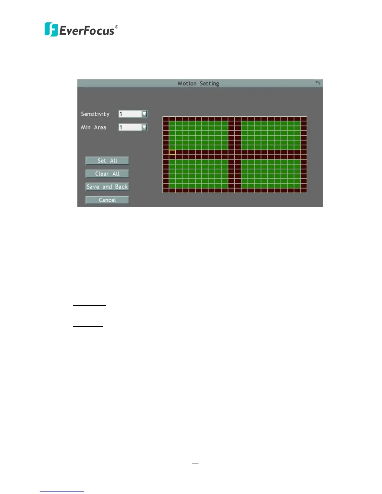7. Click the Save & Back button to save the settings and then return to the Motion menu.
