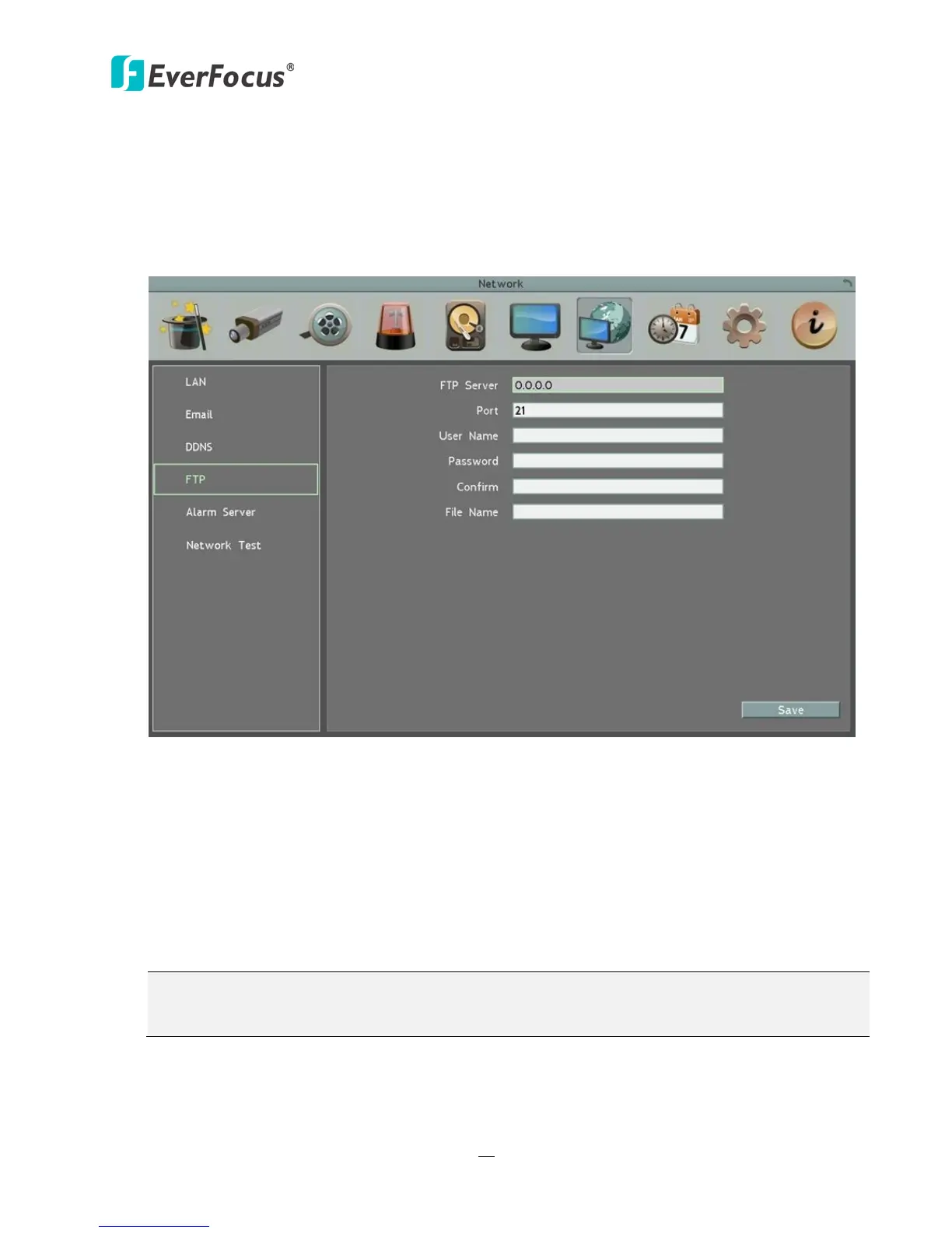 Password: Set FTP password.