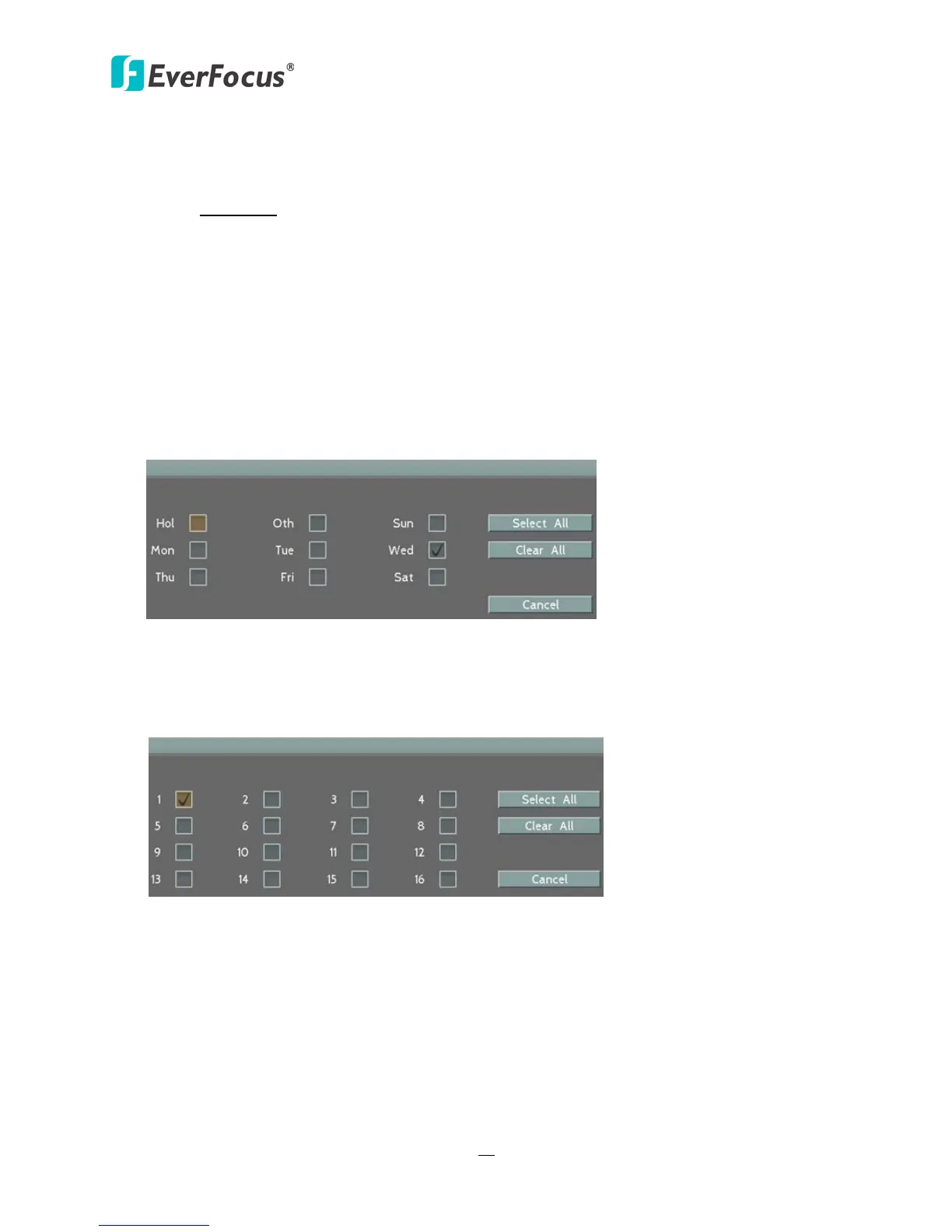you wish to copy to. "Select All" selects all days, “Clear All” deselects all days. Click “OK” to