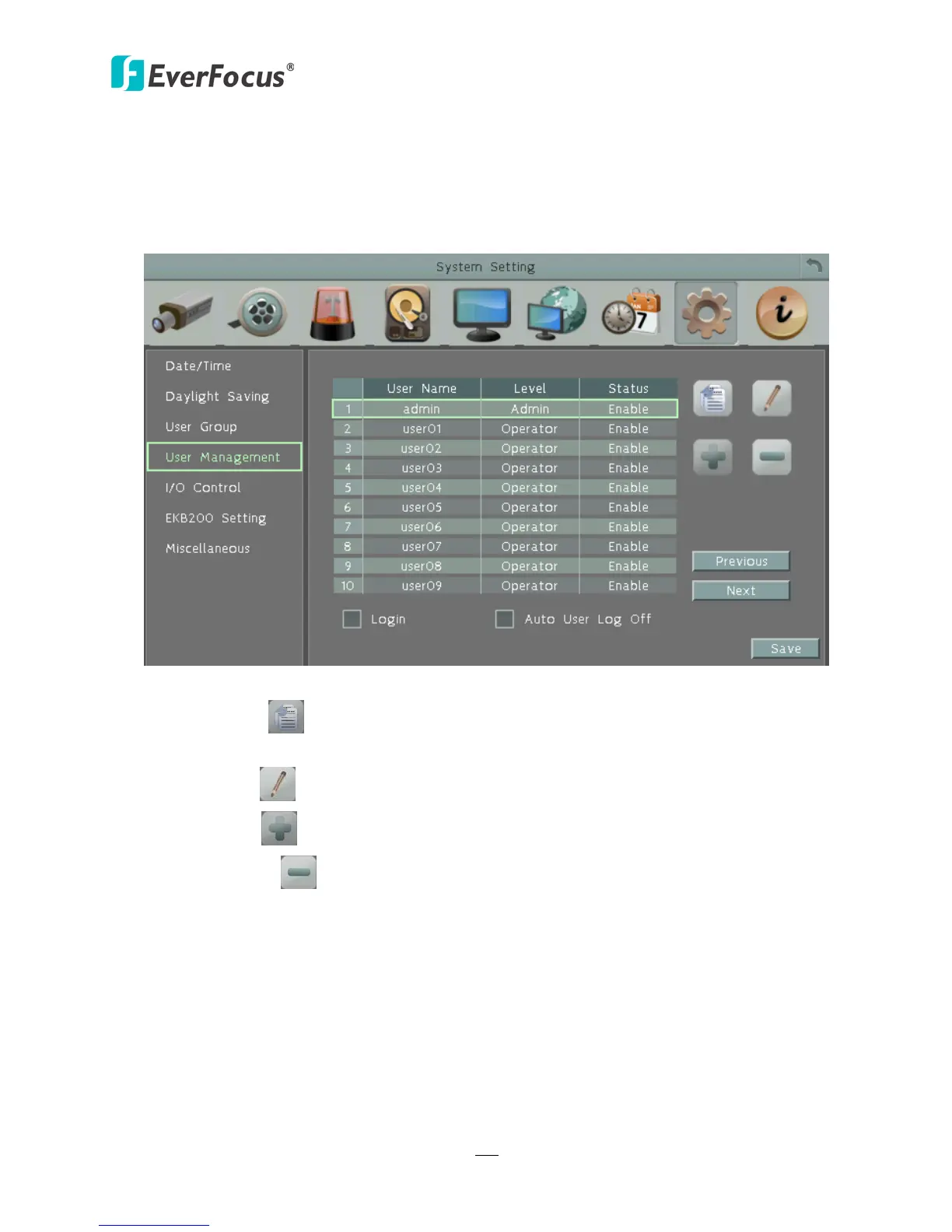 EverFocus ECOR960 8F2 - User Management