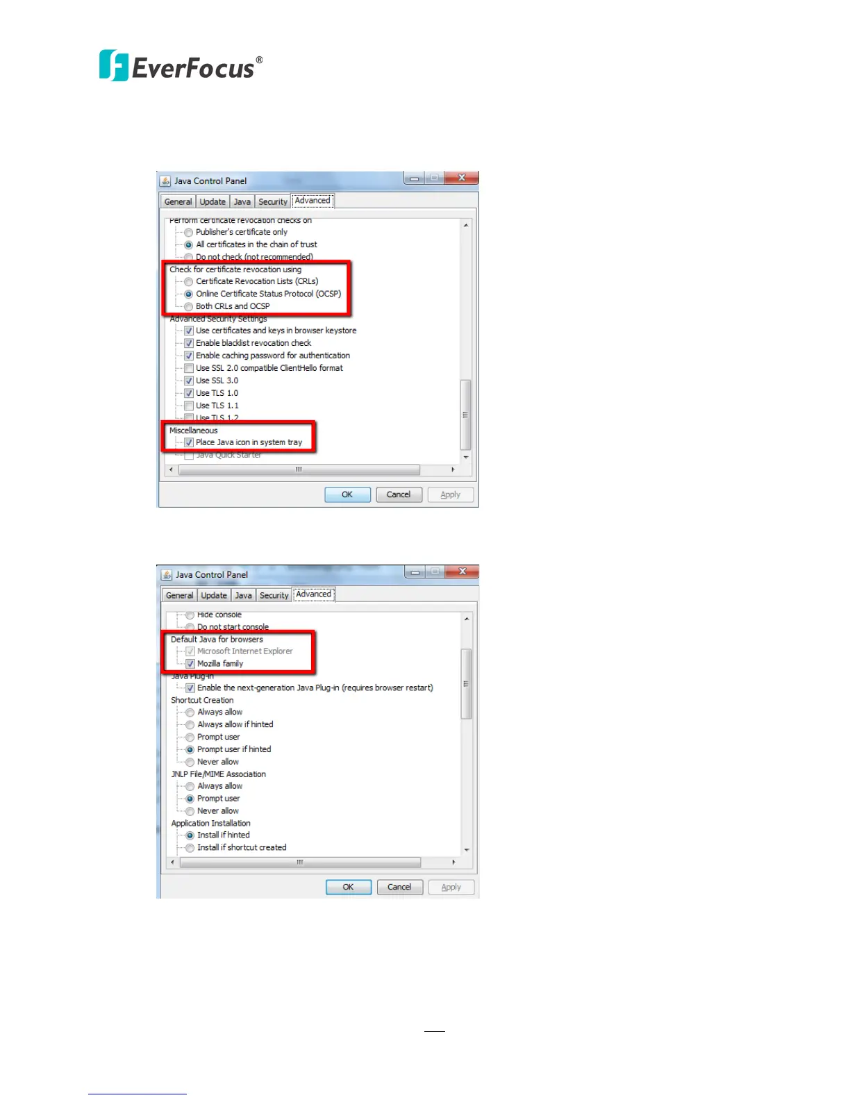 Protocol (OCSP). Also, check Place JAVA icon in system tray in “Miscellaneous” option.