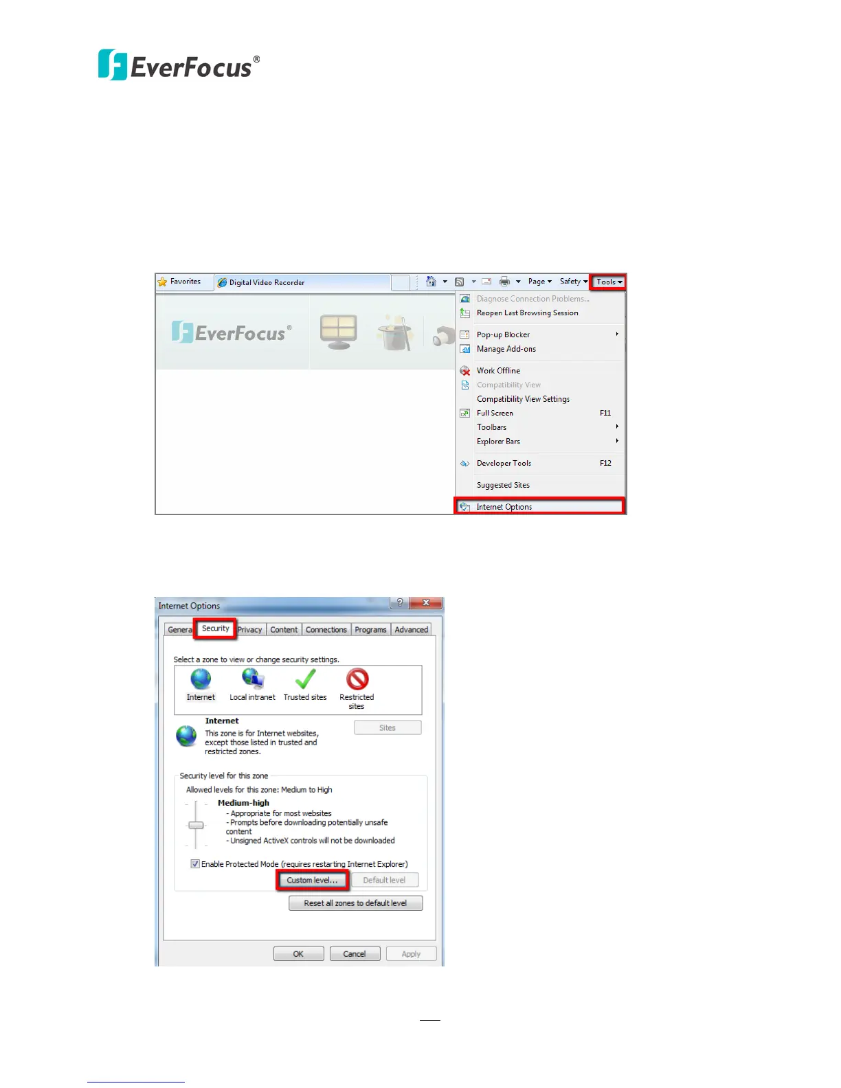 2. Click the Security tab at the top of the window and then click Custom Level….