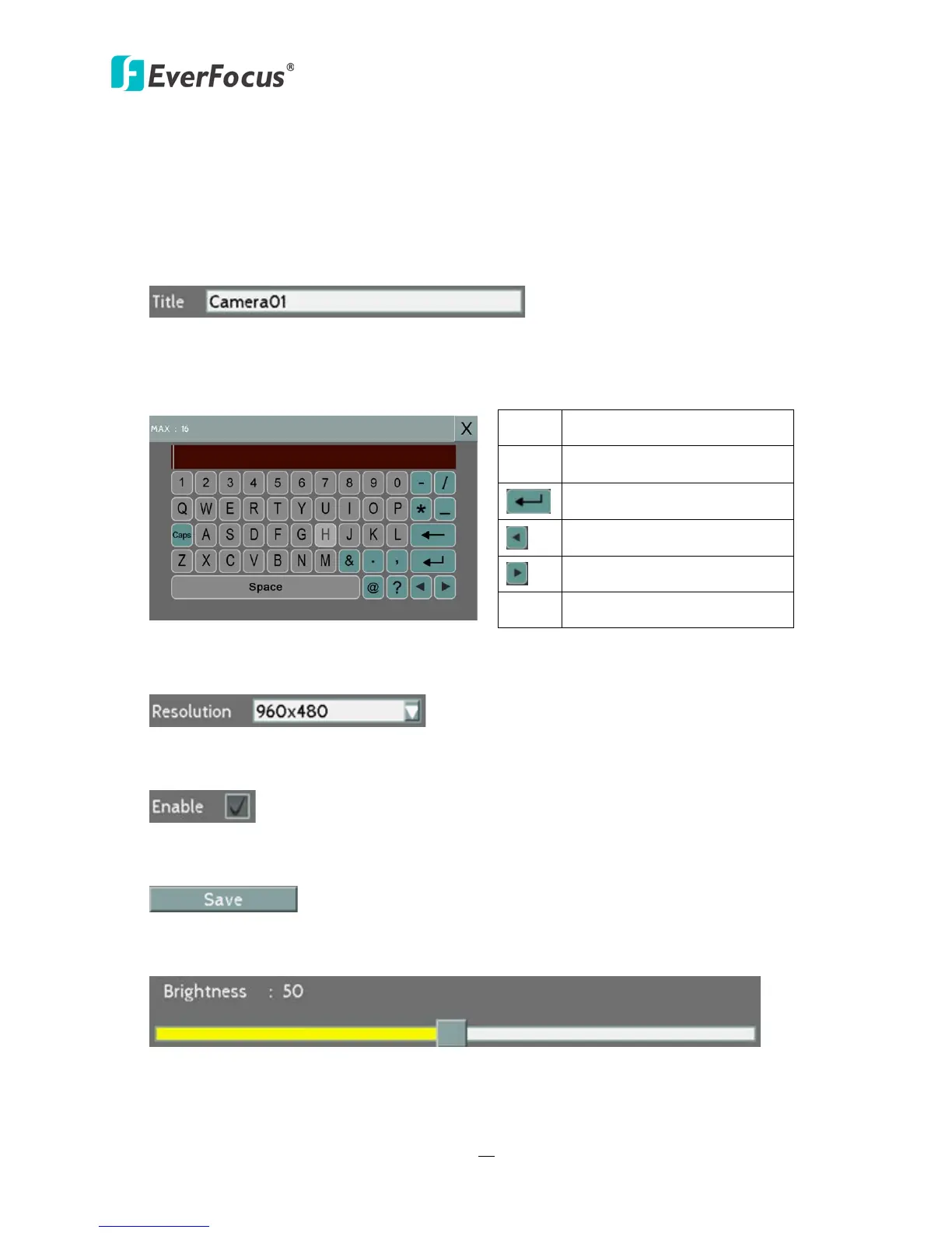 On-Screen Keyboard: Click on a button to input that character. The buttons on the right and