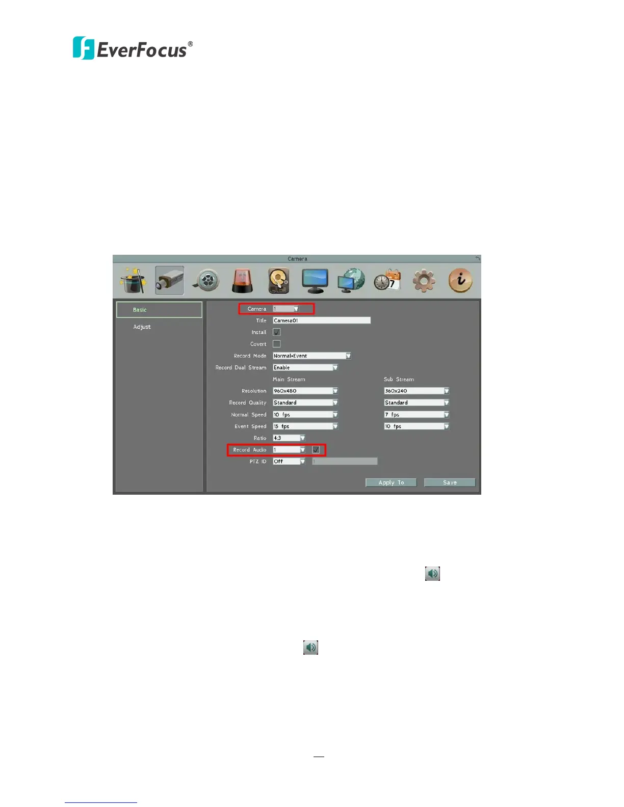 function to either one from the cameras. To switch the Audio Output function to the desired