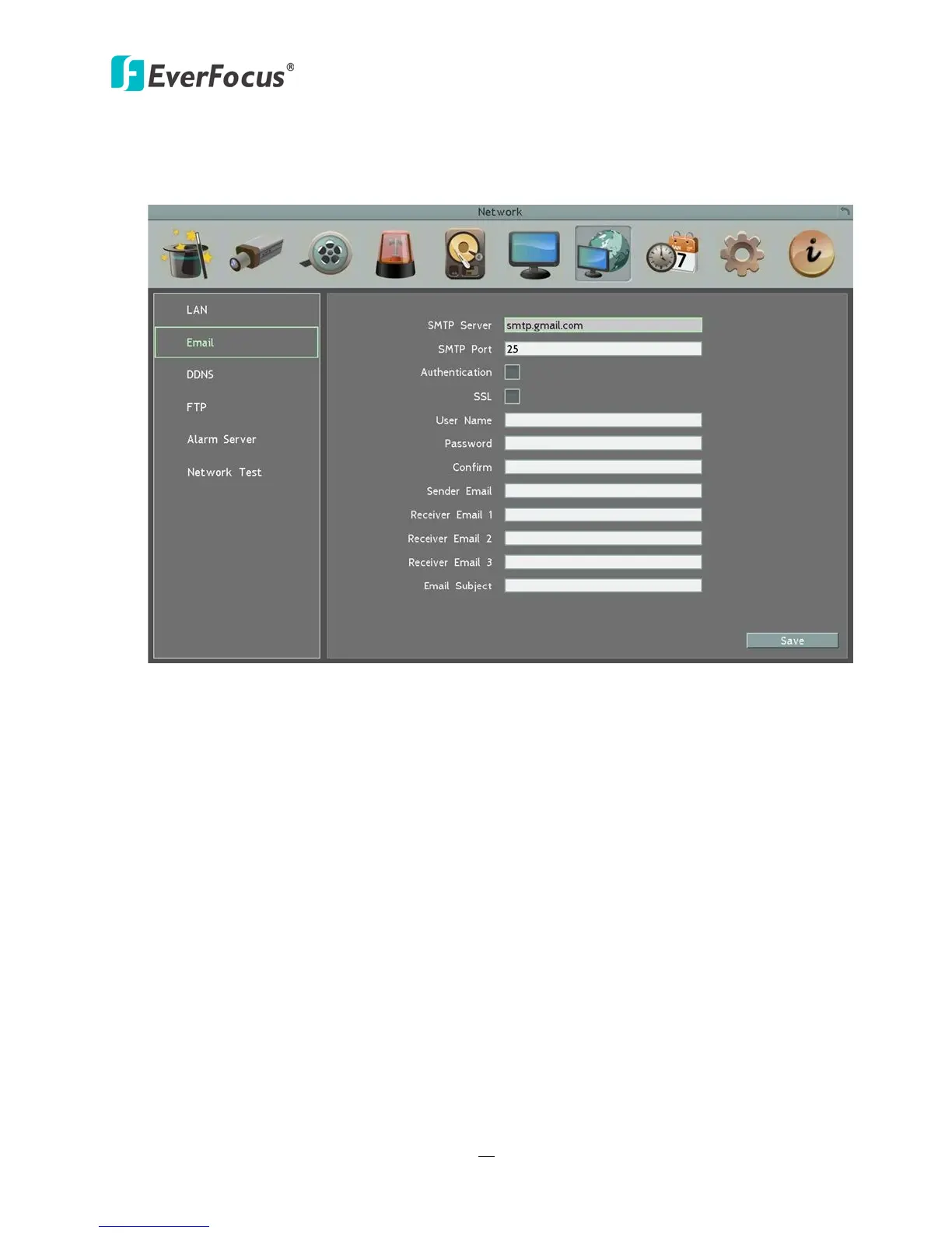 Sender Email: Input the e-mail address of the sender (the DVR). Sender’s e-mail address has