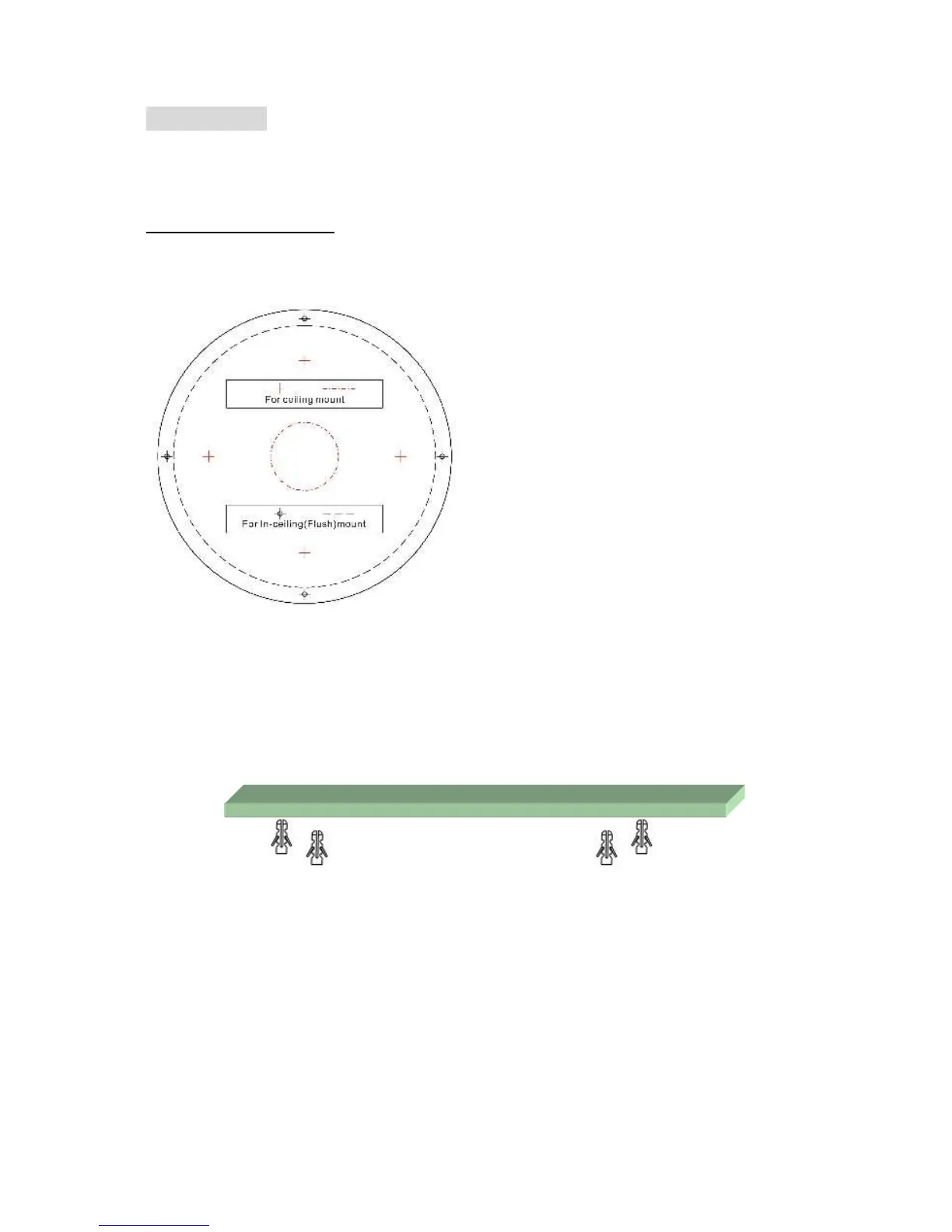 1. Paste the drilling template on the ceiling or wall. Please refer to the drilling template below.
