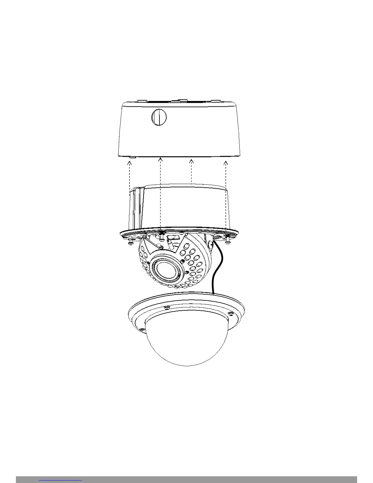 7. Attach power and video cables from source to cables from camera and push excess wire back into
