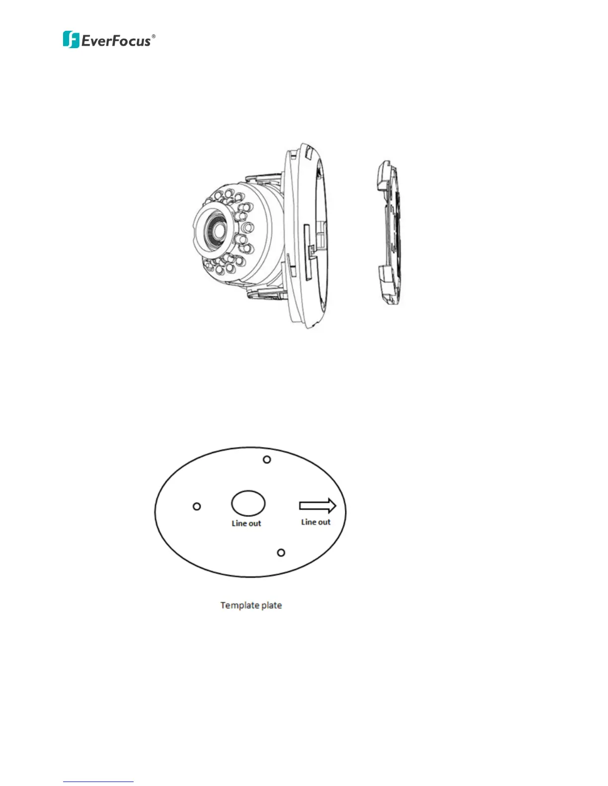 1. Stick the template plate on the position where you want to attach the camera, drill the