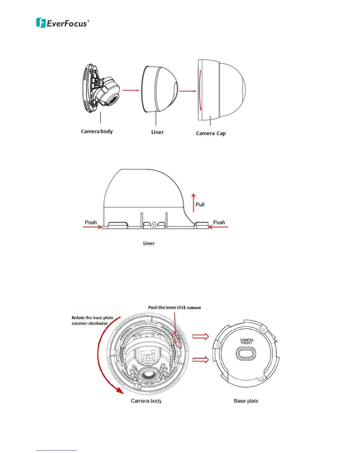 3. Rotate counter-clockwise to remove the camera cap, press and pull to remove the liner.