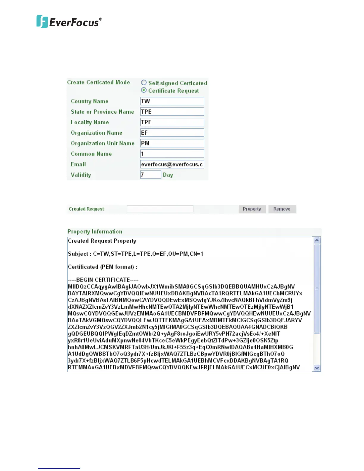2. Type the required Certificate information and then click the Apply button. The subject line will