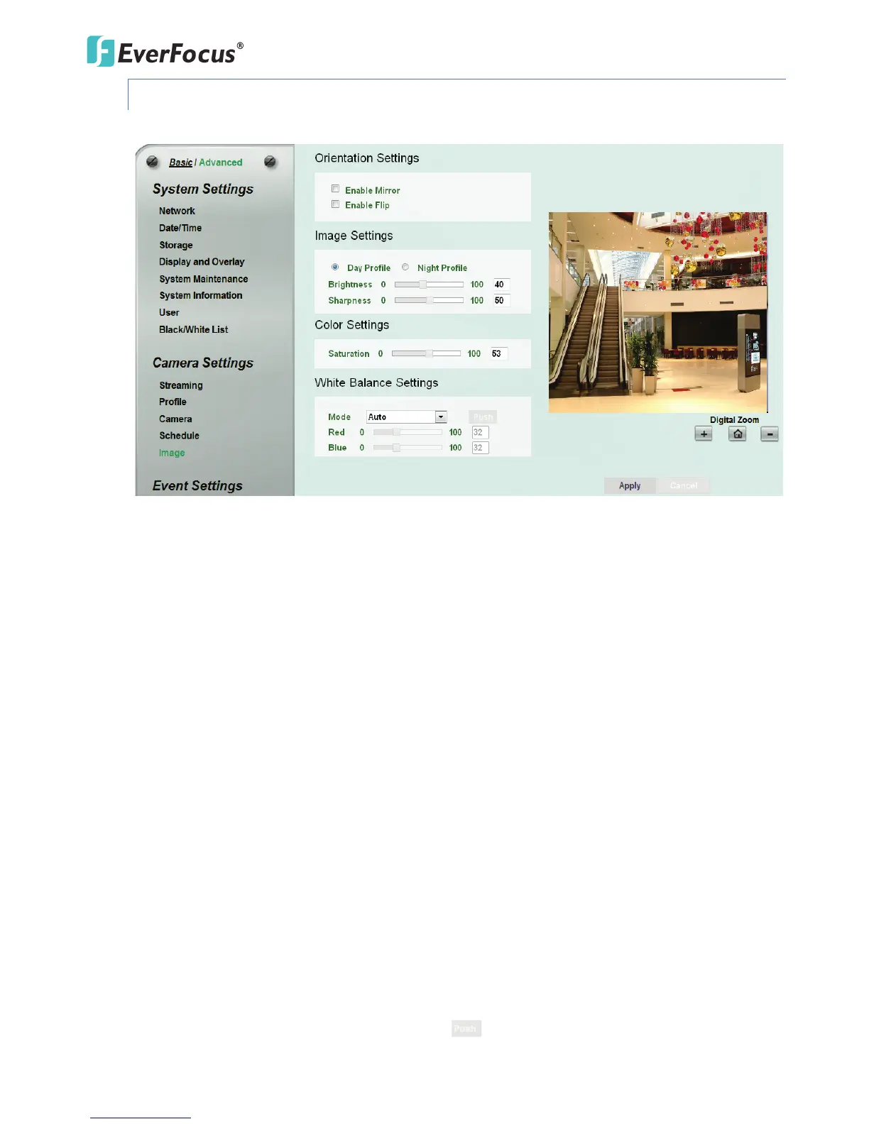 【Image Settings】Select Day Profile or Night Profile and then adjust the slide bars below to