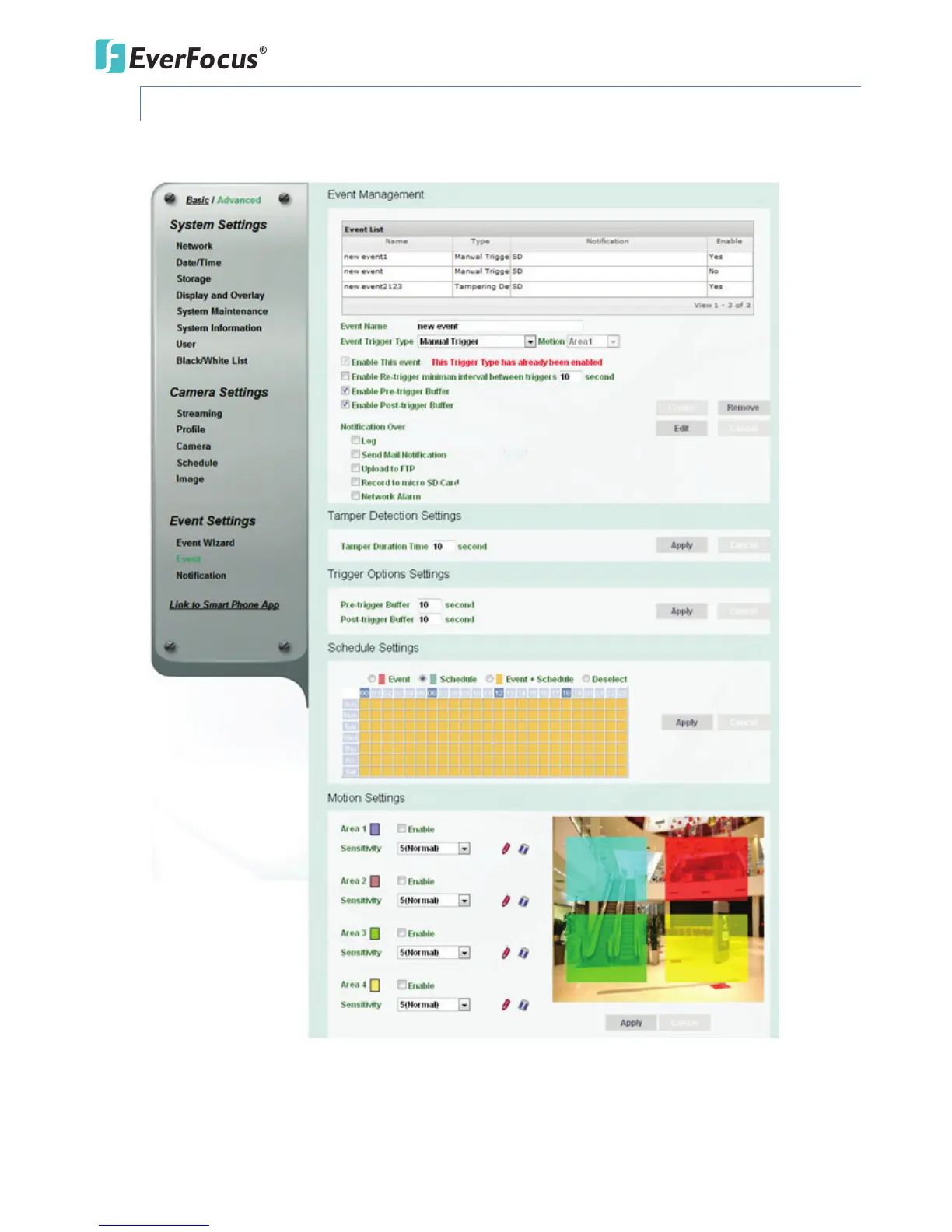 configure the event settings along with the Recording Schedule on this page.