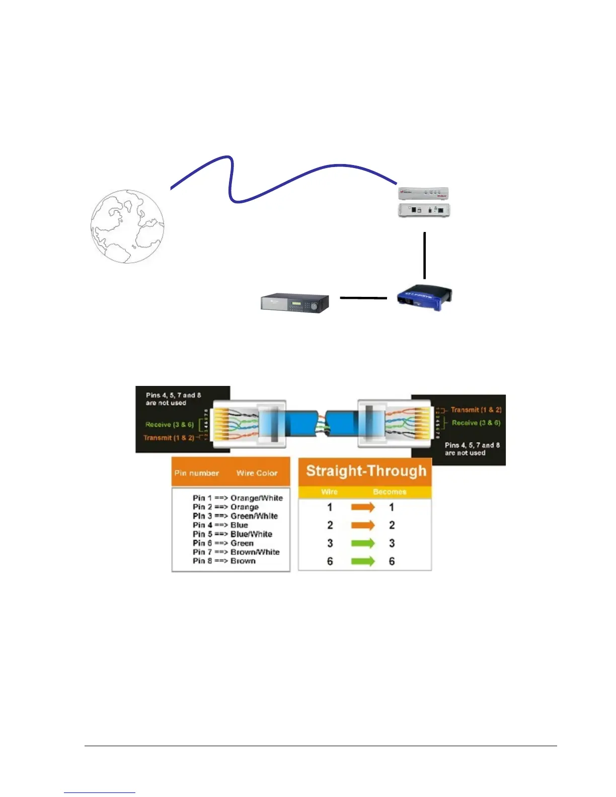 Straight Through Ethernet Cable Pin outs: