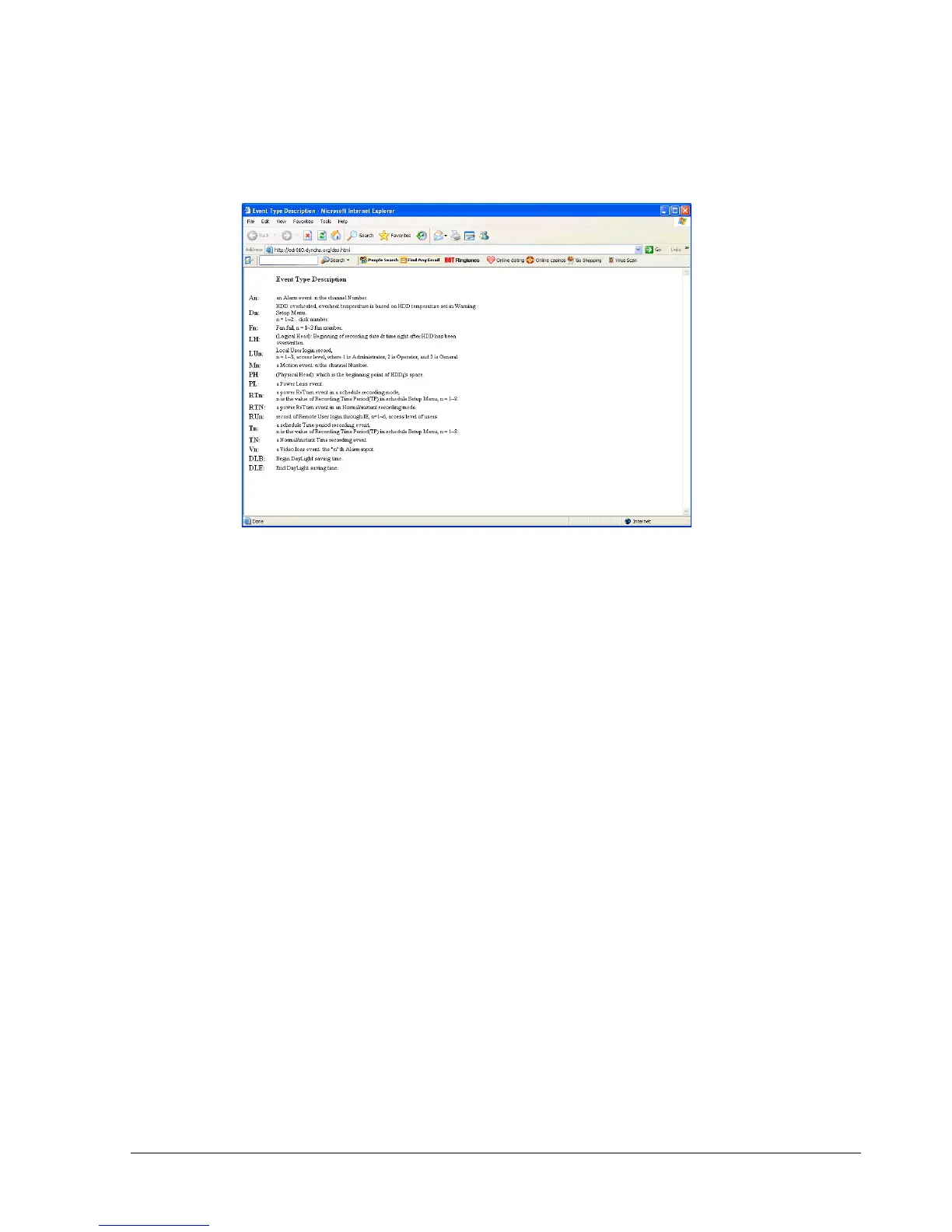 sign, an event description list will show up as