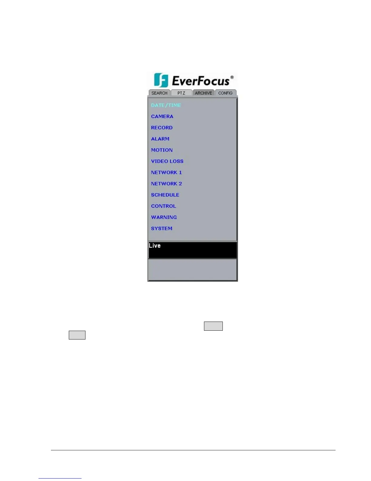 Click on the “CONFIG” tab to open a page where you can remotely change the DVR’s settings.