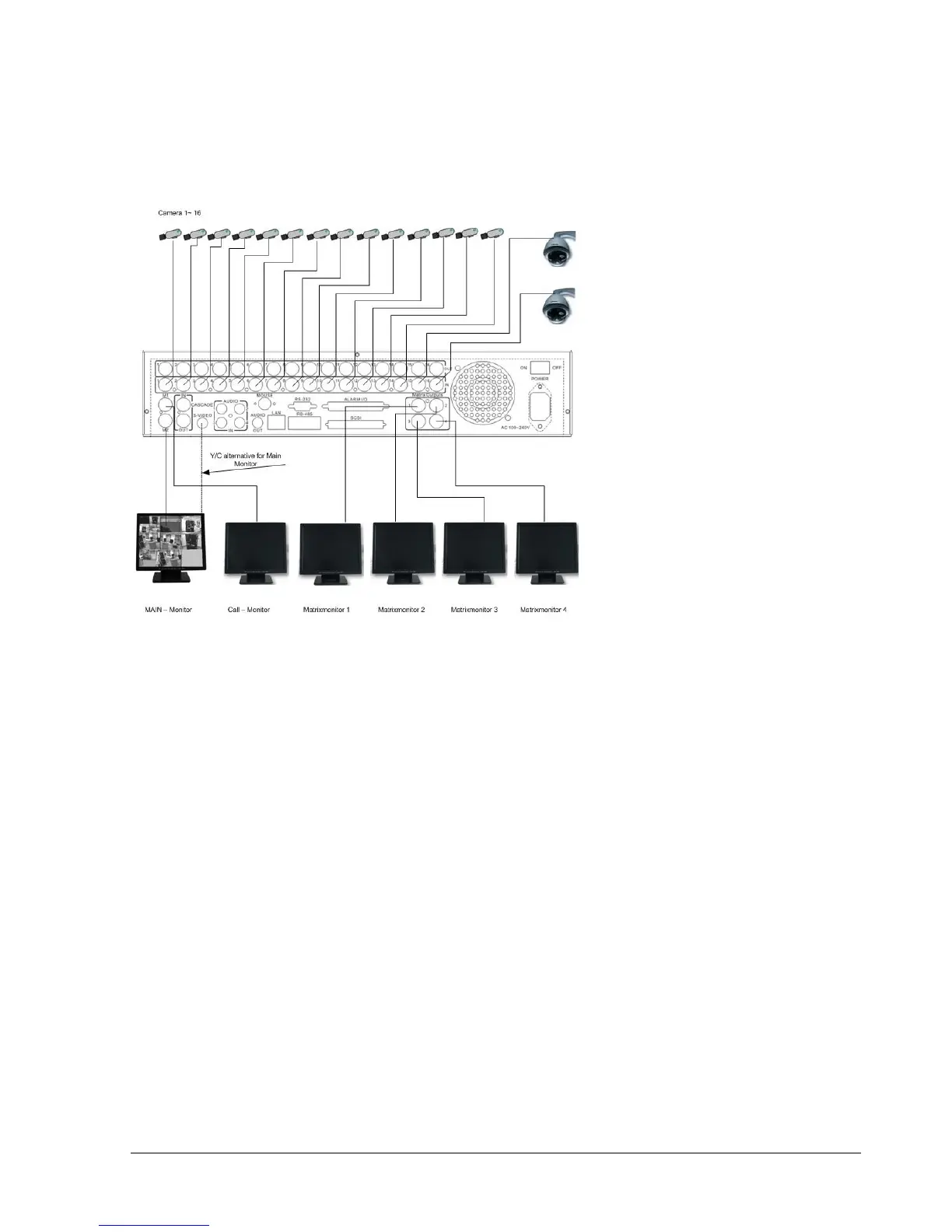 For local DVR operation, MAIN monitor connection is compulsory. Call and matrix monitors can be