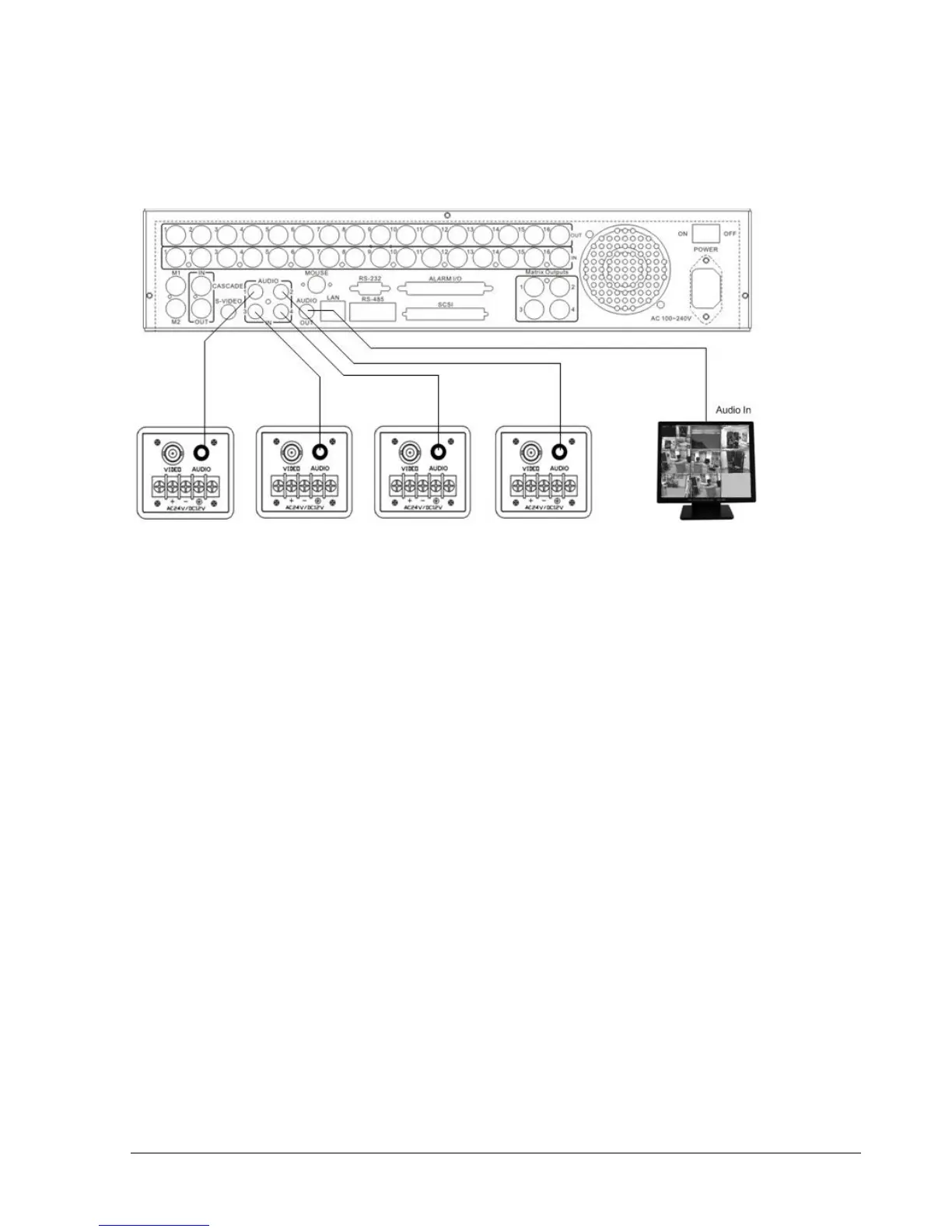 The EDR1640/1620/920 DVRs provide 4 audio inputs and 1 audio output.