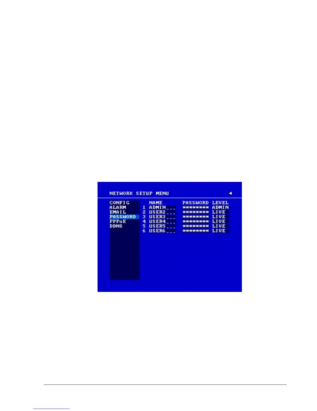 In the PASSWORD of the NETWORK SETUP MENU,we define: