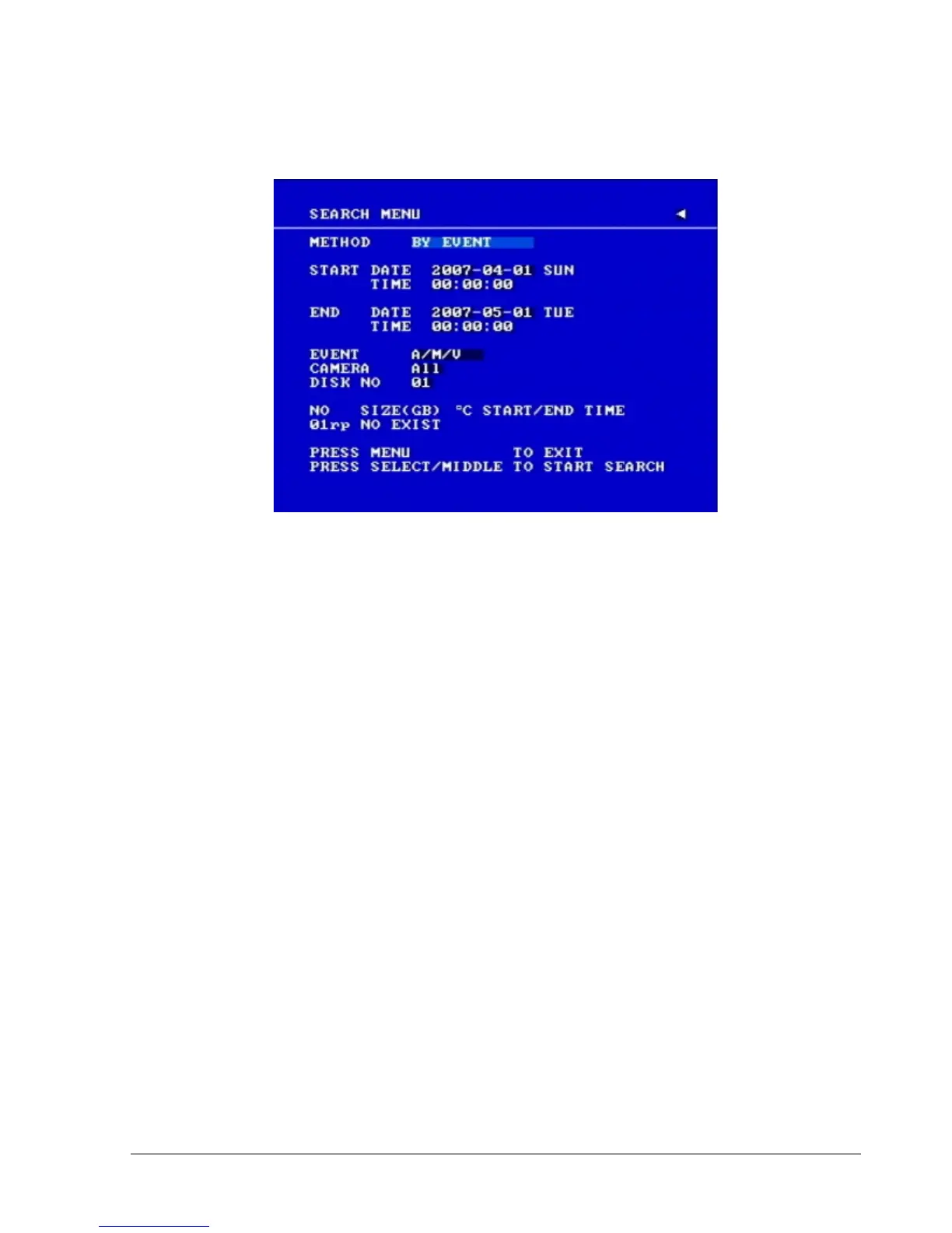 and then select the start date/time you want to search. Then, select the camera number and Disk