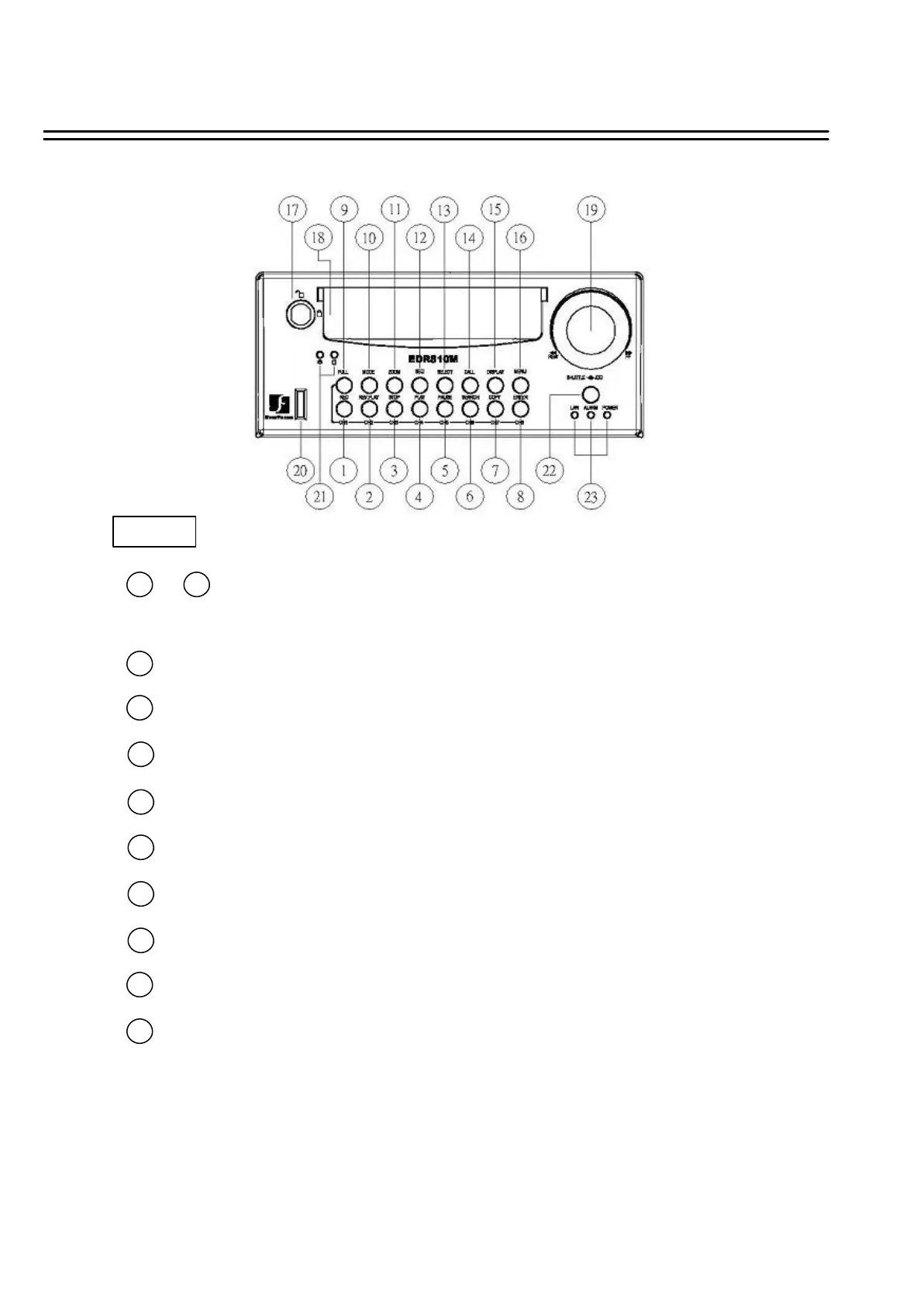 Channel Key: Press FULL+Channel Key (CH1~CH8) to display video image in the full screen