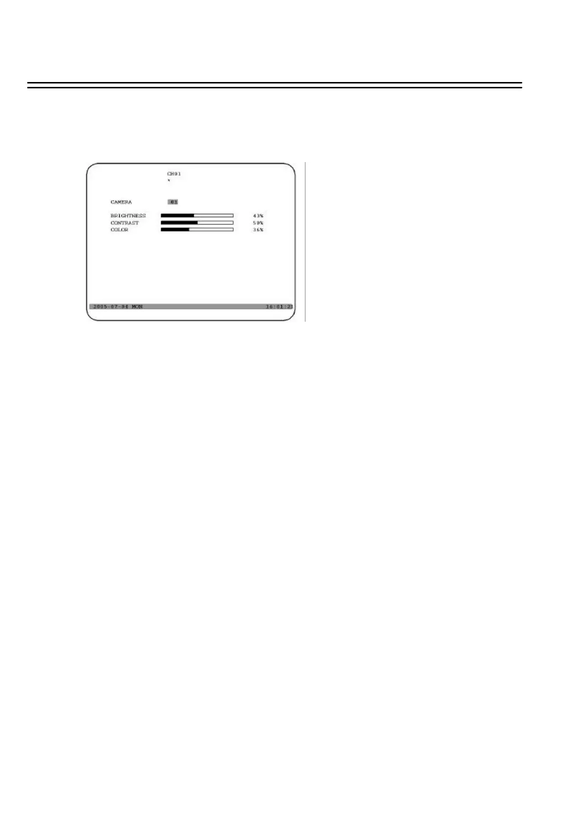 (4) COLOR:The color percentage of the current camera; from 0% to 100%.