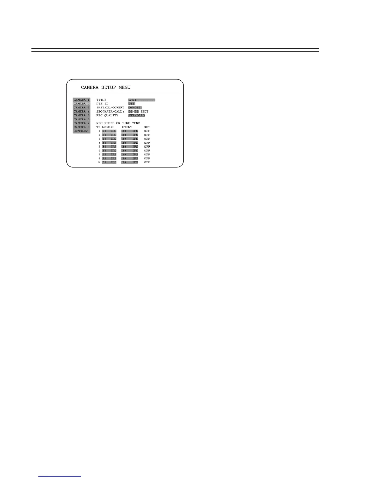 (2) PTZ ID: Select PTZ ID from 001~255 or OFF. The default value is 10+N where N is camera’s