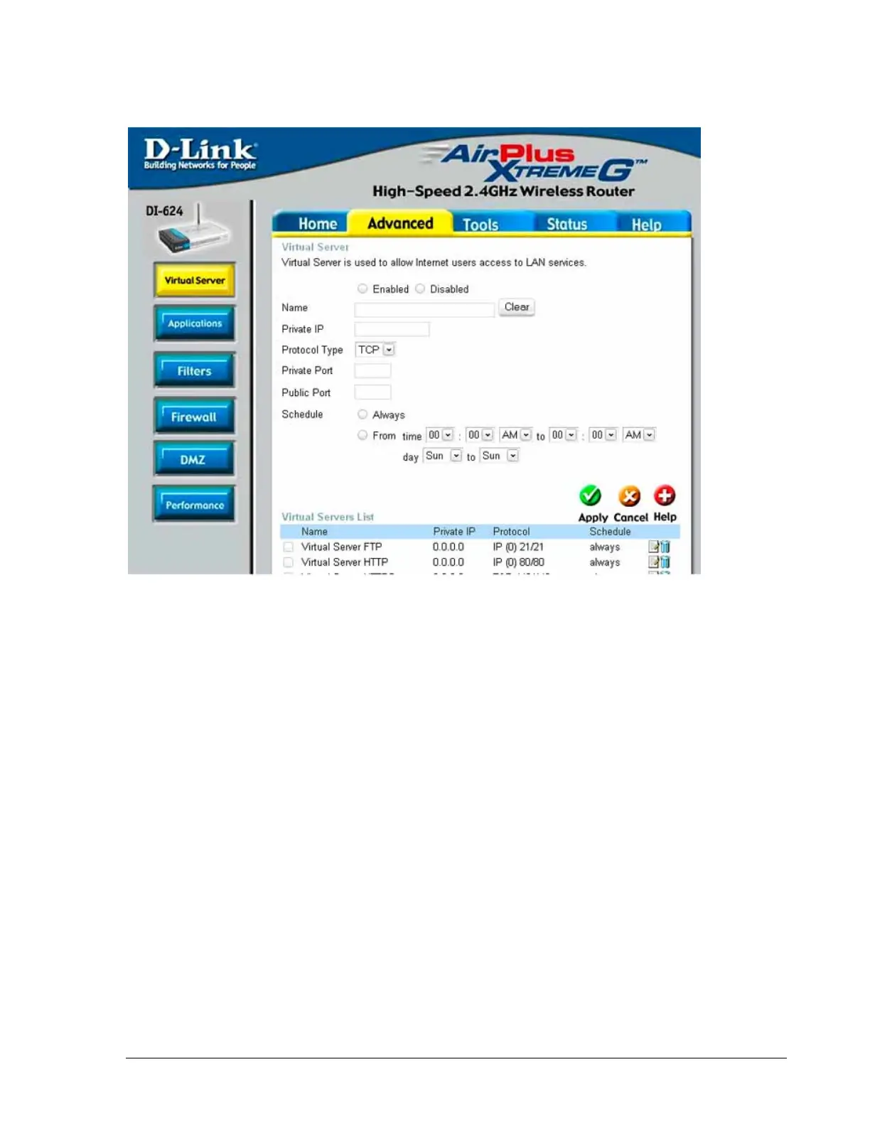 The schedule of time when the virtual service will be enabled.