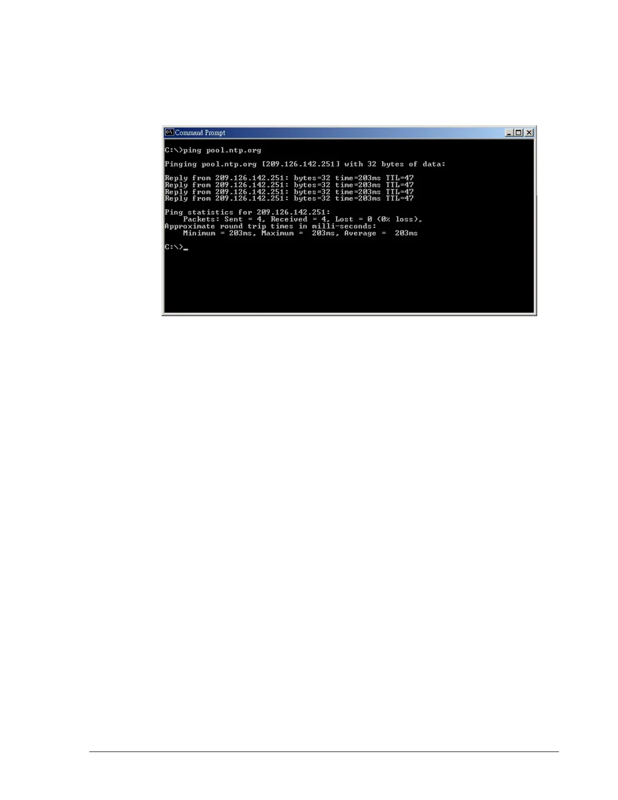 Under Dos Prompt, type “C:\Ping Pool.NTP.ORG to find out the IP address of NTP