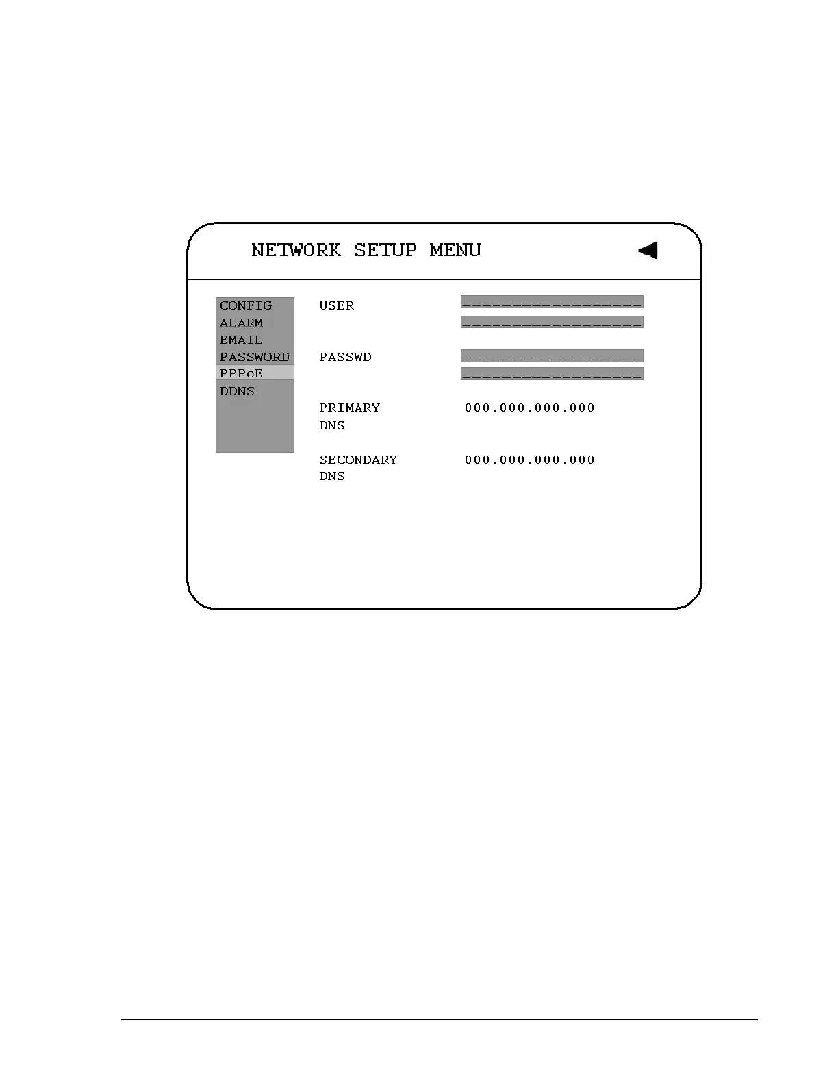 In the PPPoE of the NETWORK SETUP MENU, we define: