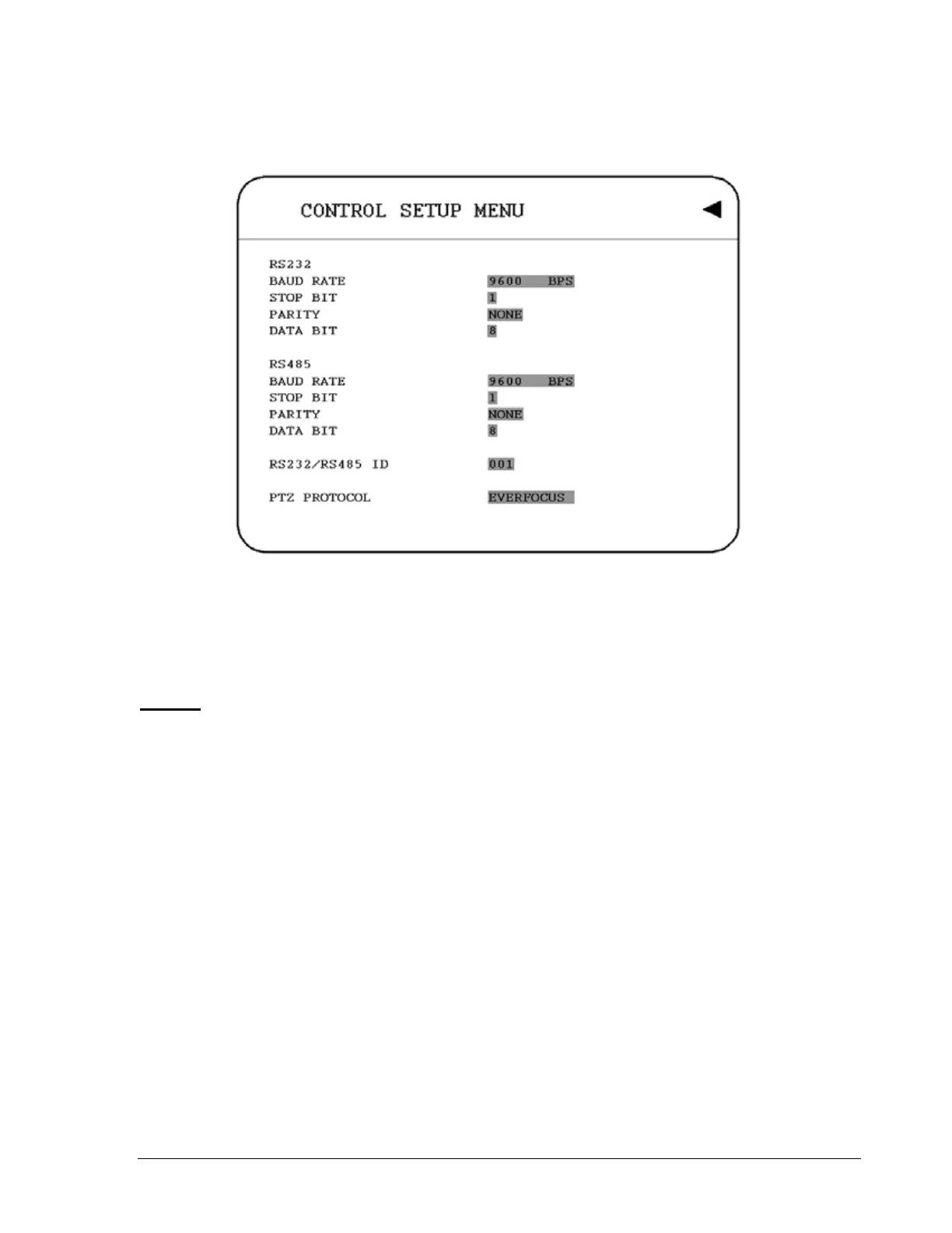 the RS232 port on the DVR. There are six different speeds, 2400 BPS, 4800 BPS, 9600