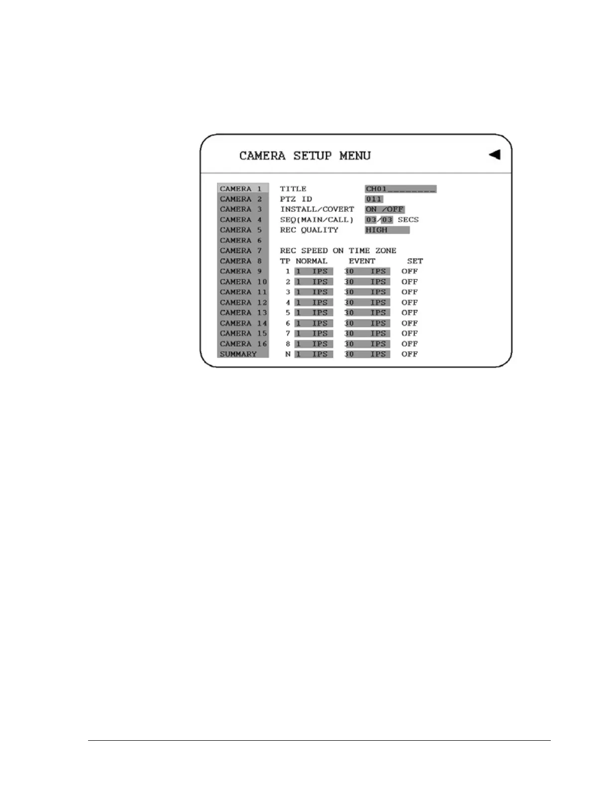 2. When the event and schedule are set, enter the CAMERA SETUP MENU to set the