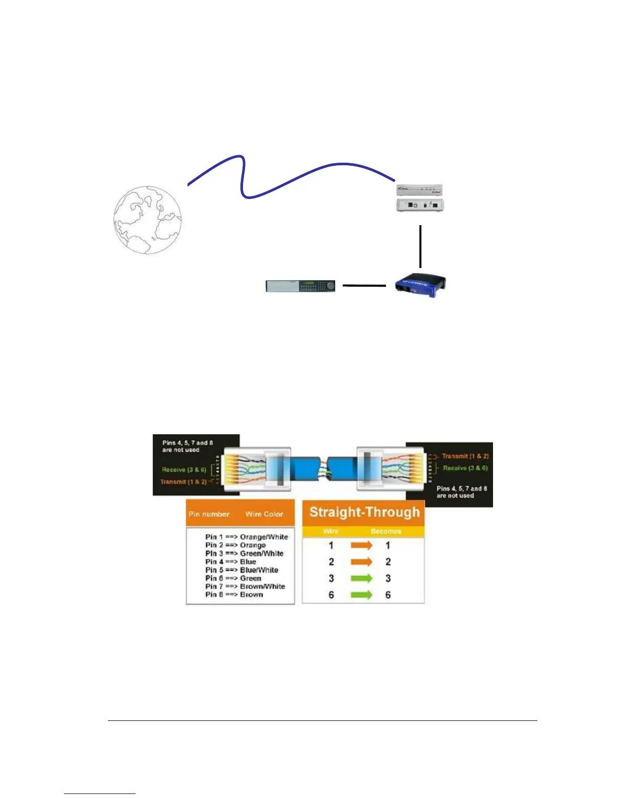 Straight Through Ethernet Cable Pin outs: