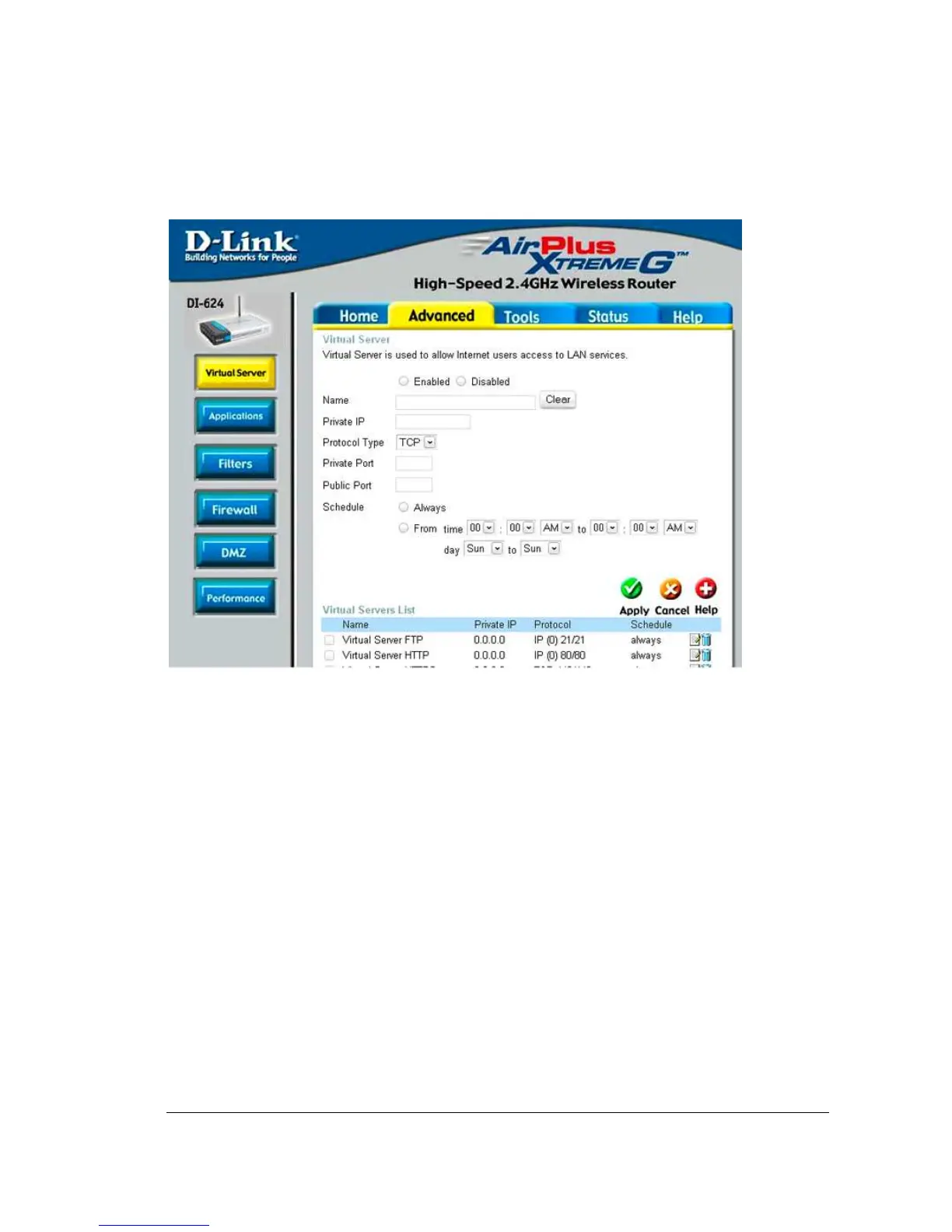 1. To open ports within your router, click on Advanced, then go to Virtual Server.