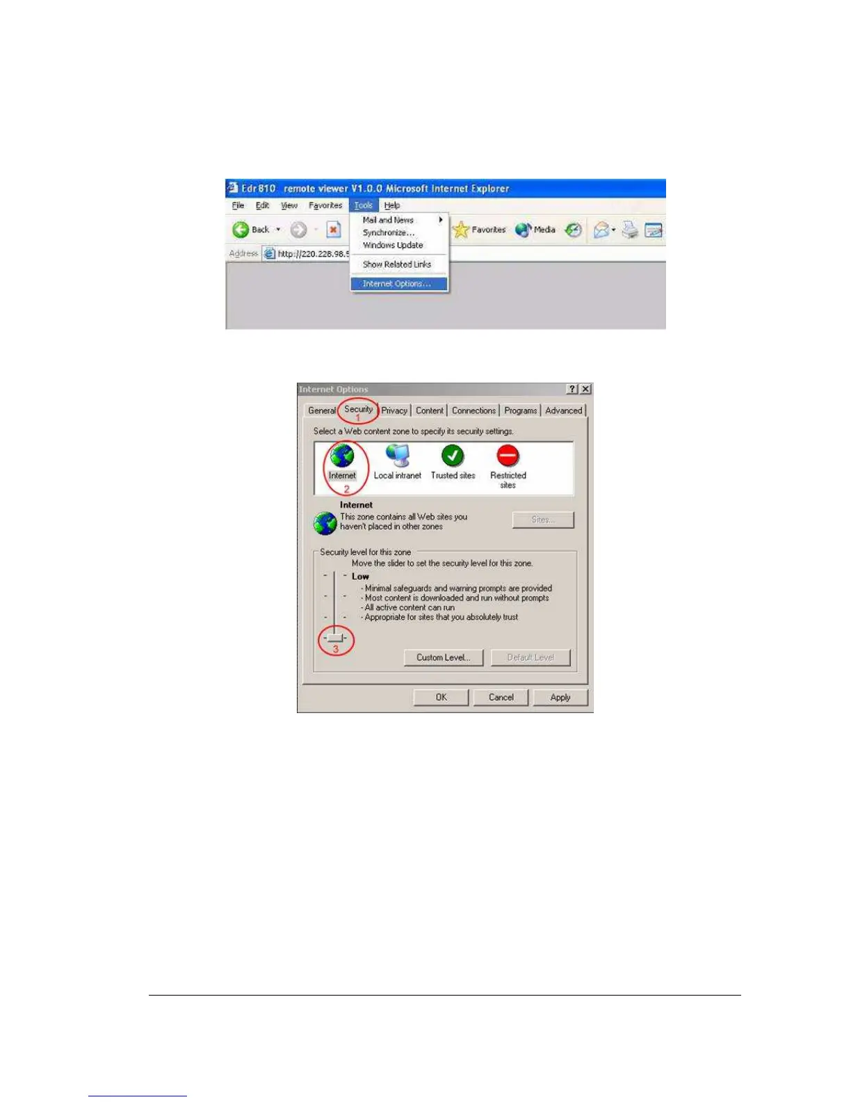 Please refer to the above steps for changing Security Options to Low.