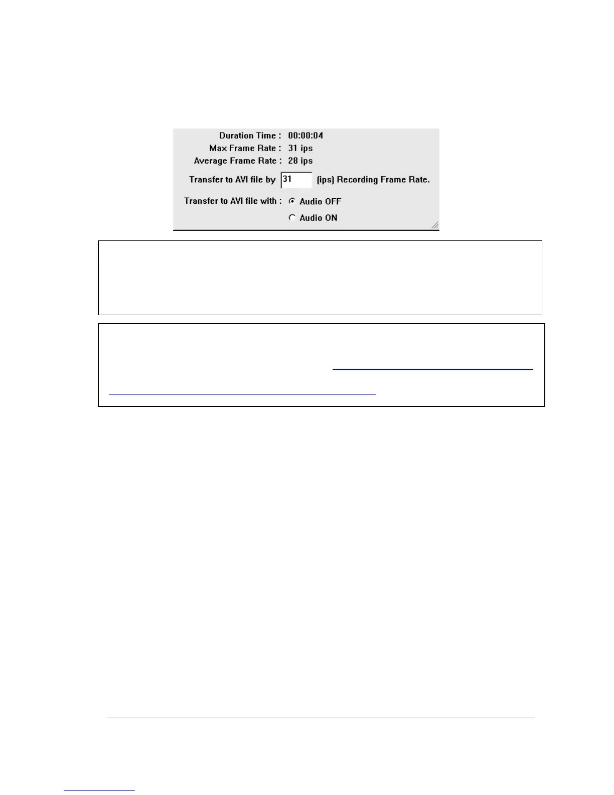be transferred to AVI file. Otherwise, select Audio OFF.