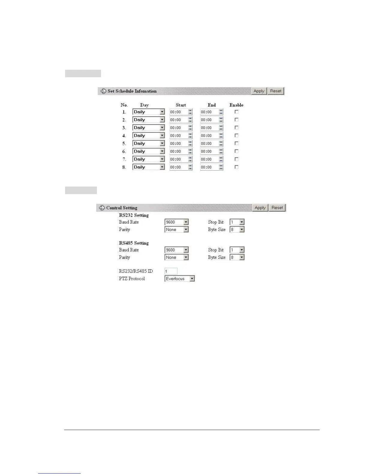 SCHEDULE setup menu