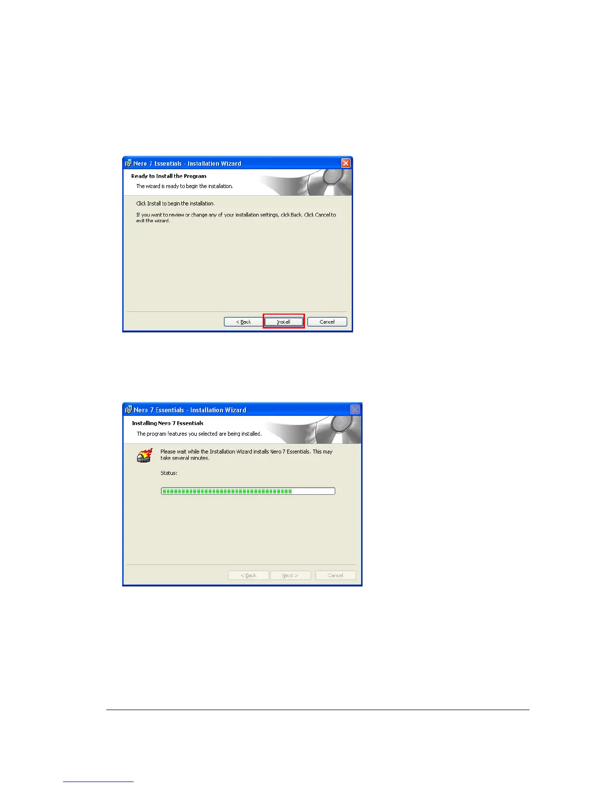 12. Please wait while the installation wizard installs Nero 7 Essentials.