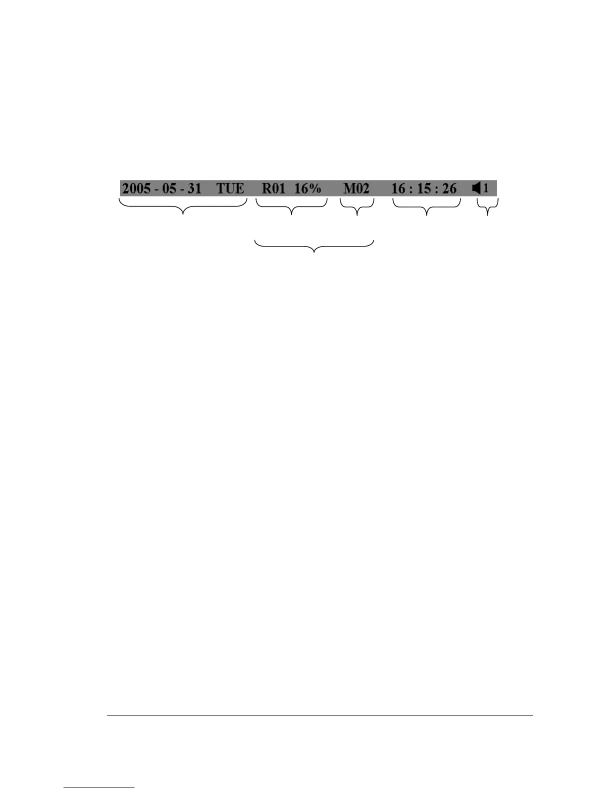 There are four parts: current date, record status, event, and current time.