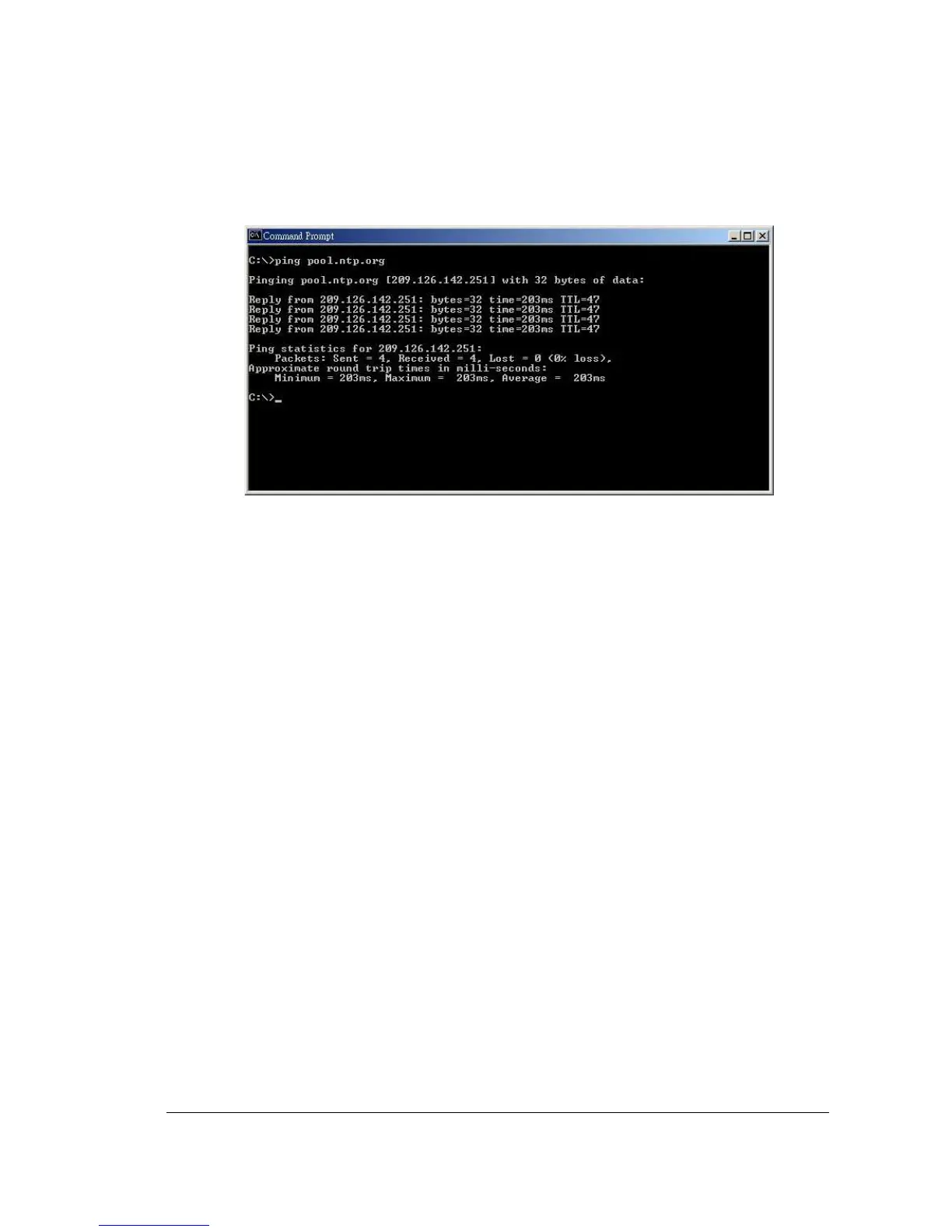 c) In the Dos Prompt, type “ping pool.ntp.org” to find out the IP address of an NTP
