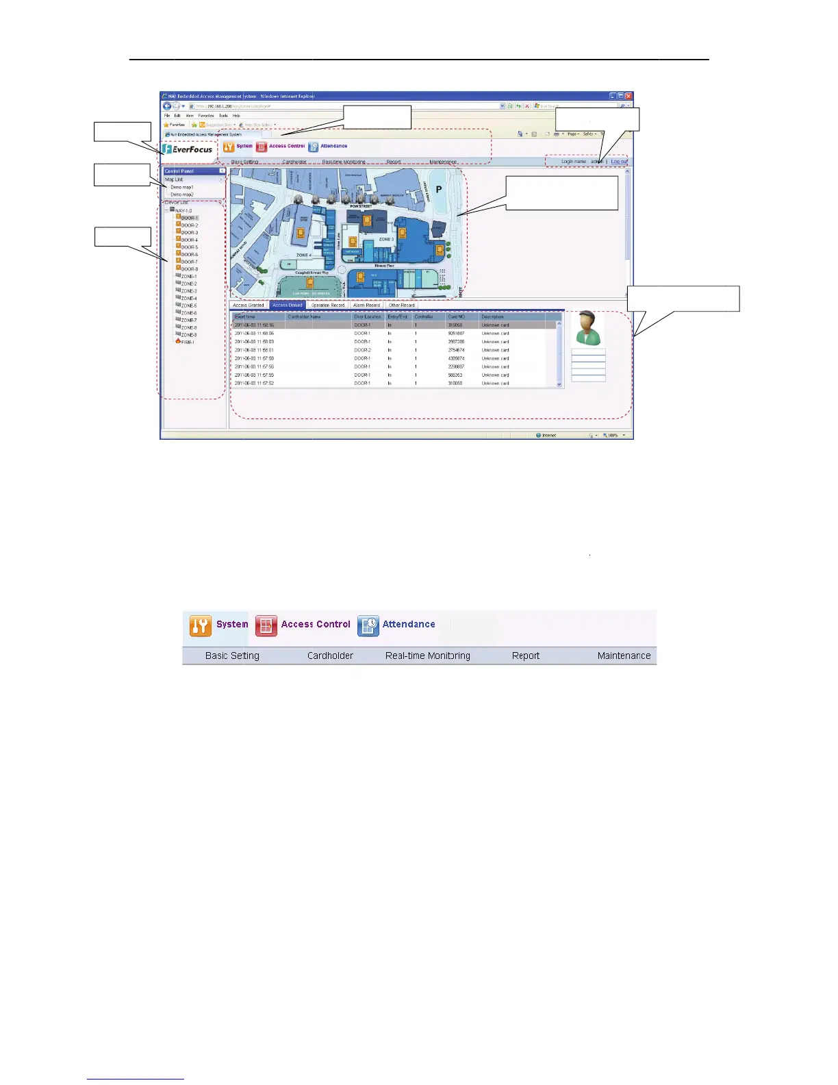 EverFocus EFC304 - Login; Menus; Control Pannel
