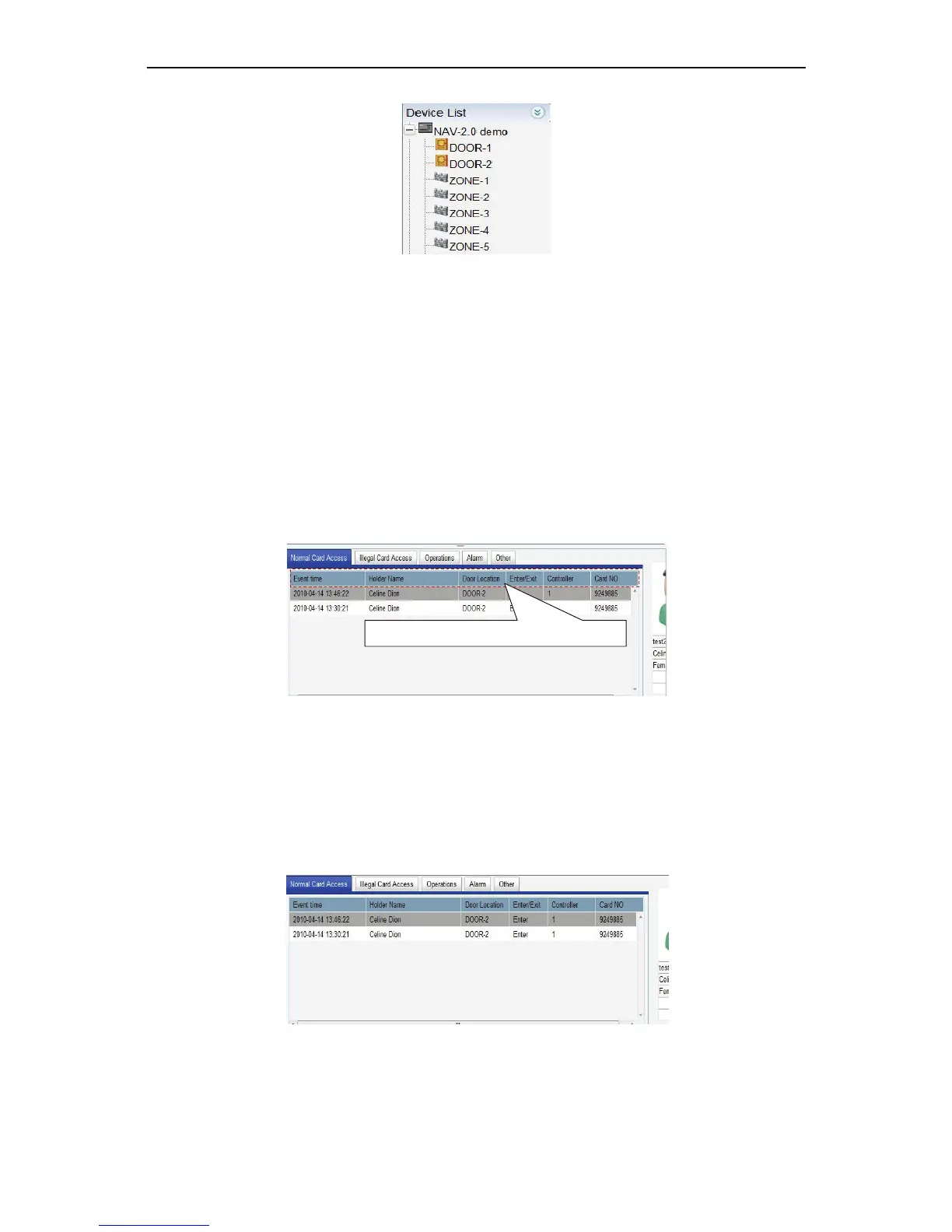 Eachrecord is including: eventtime,cardholder,doorlocation,entry/exit, controller andcard number.