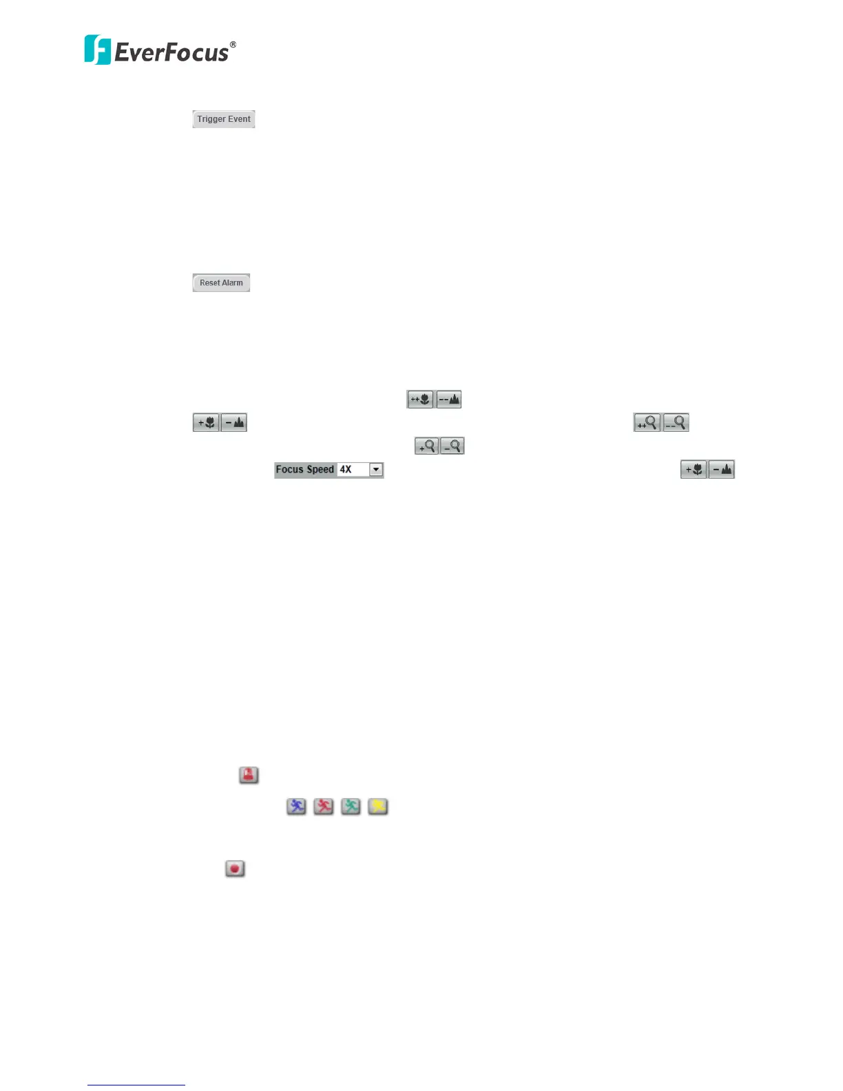 control the lens actions. Click and hold the icons to continuously focus closer or farther.