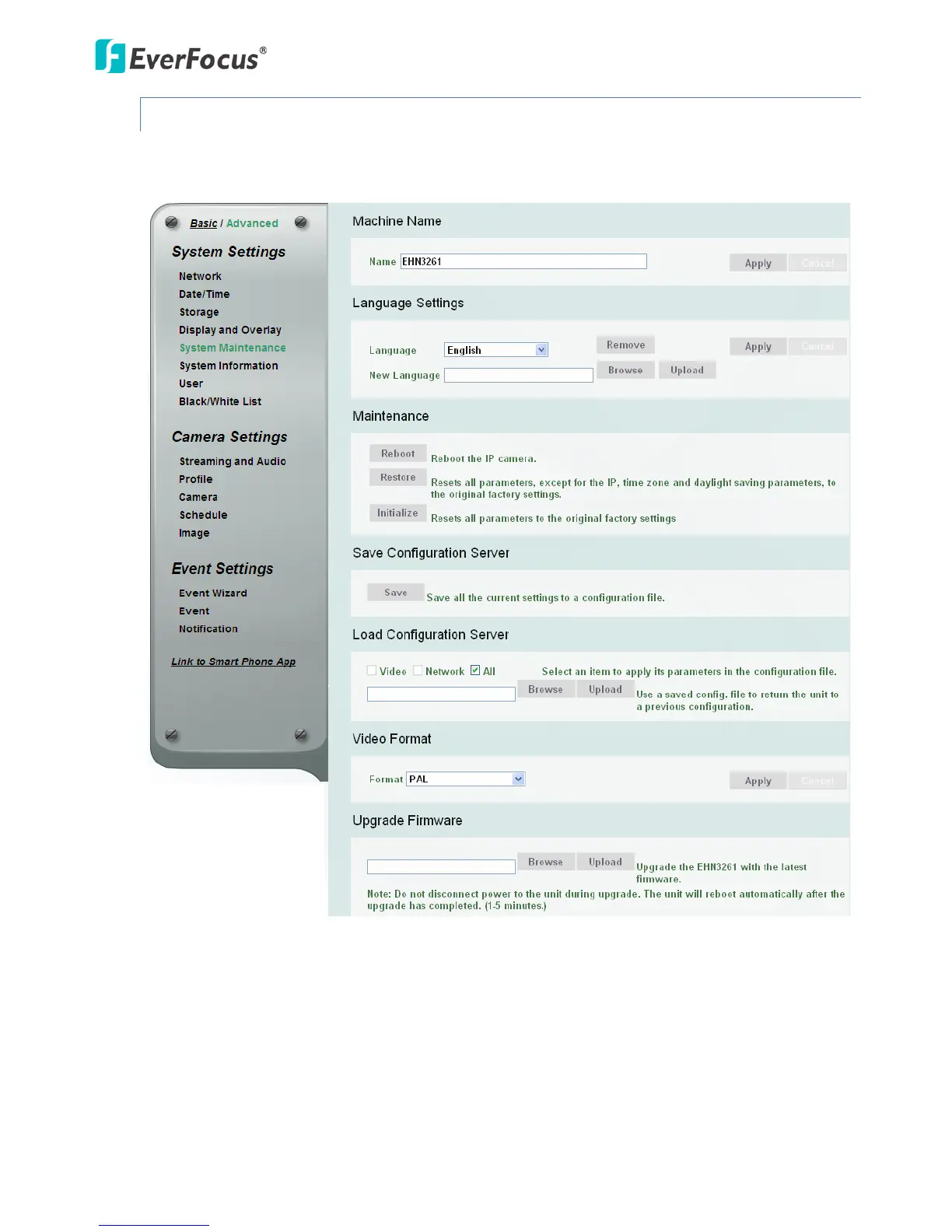 EverFocus EHN3261 - System Maintenance