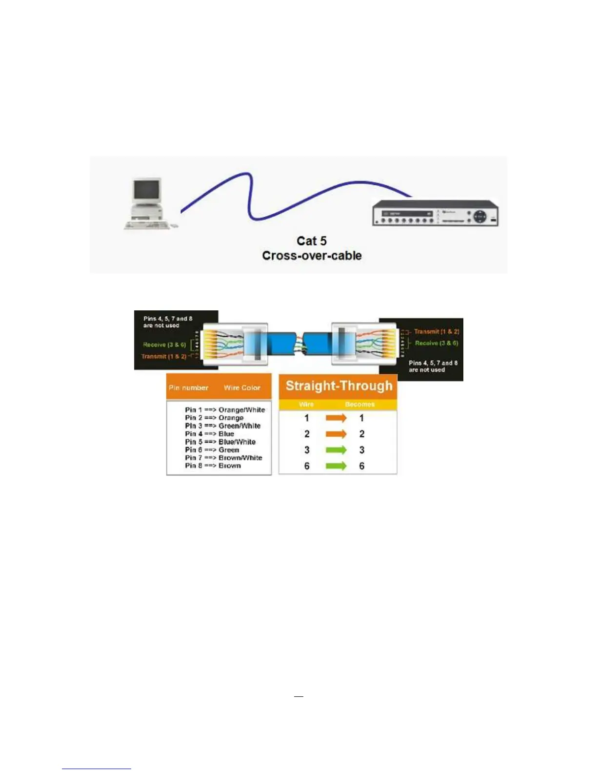 Straight Through Ethernet Cable Pin outs: