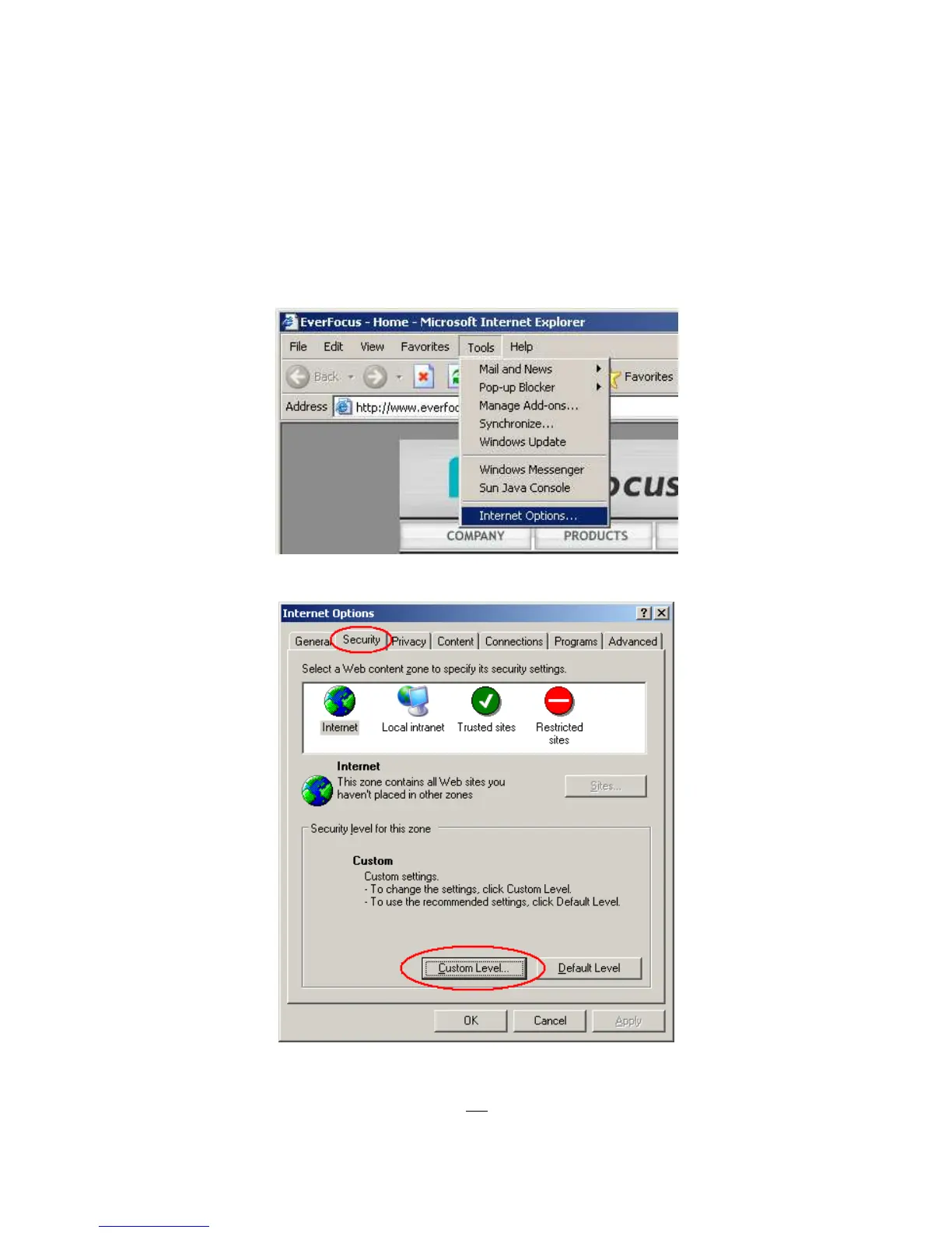 Click the Security tab at the top of the window, then choose Custom Level near the bottom.