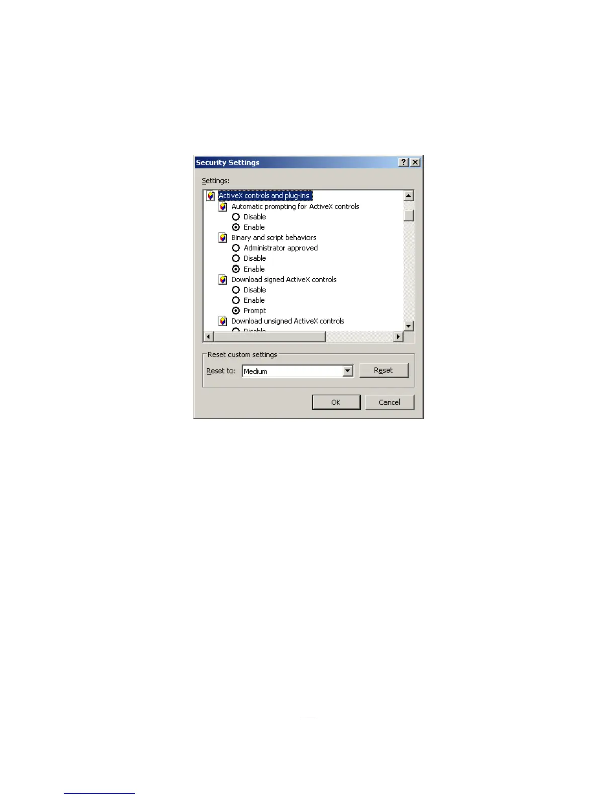 Download unsigned ActiveX controls