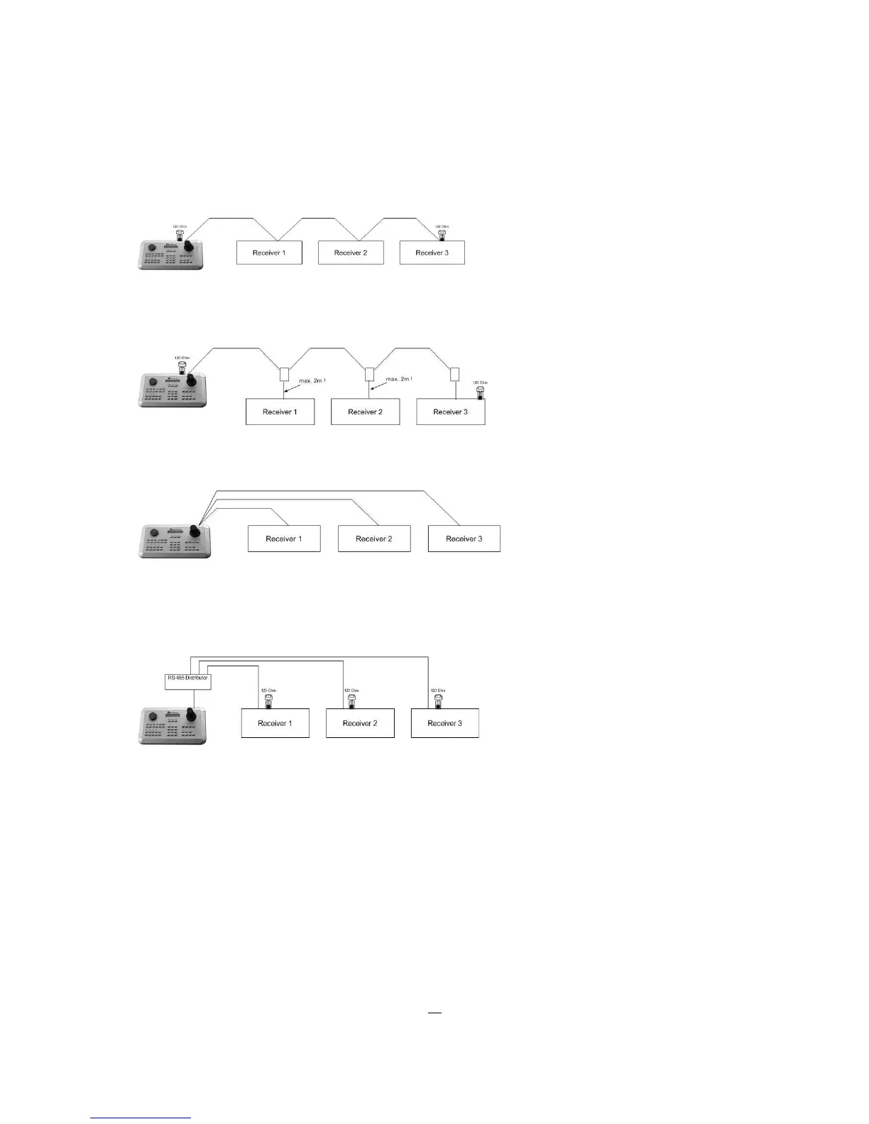 A direct RS-485 bus star wiring is not supported unless using a signal distributor (see below).