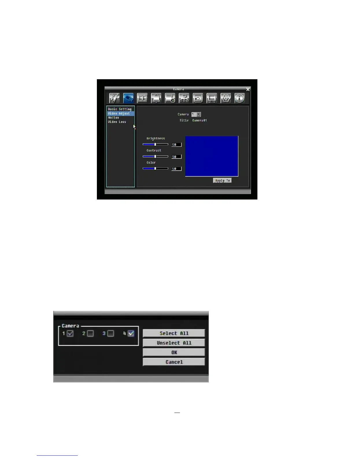 Apply To: This button can be used to copy the video settings to other cameras. Select which cameras you