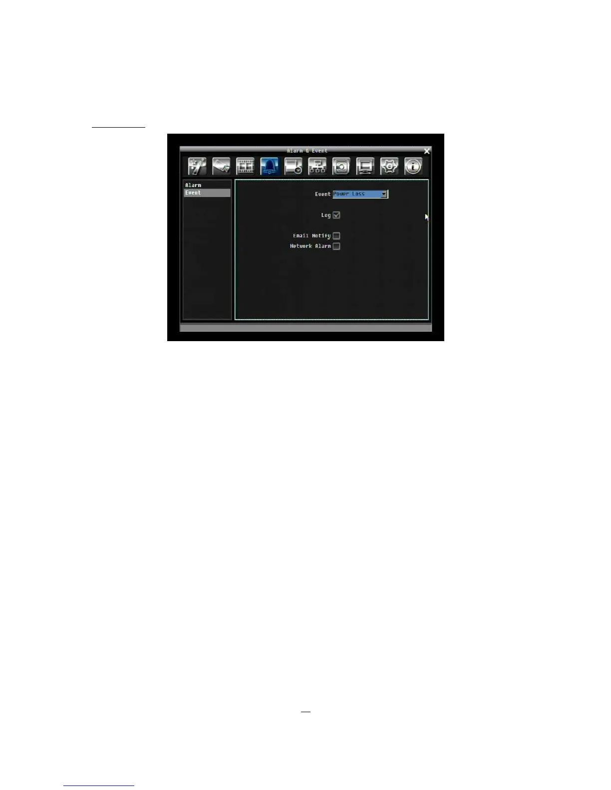 Log: Log is permanently checked for this feature. Power Loss events are always recorded by the DVR.