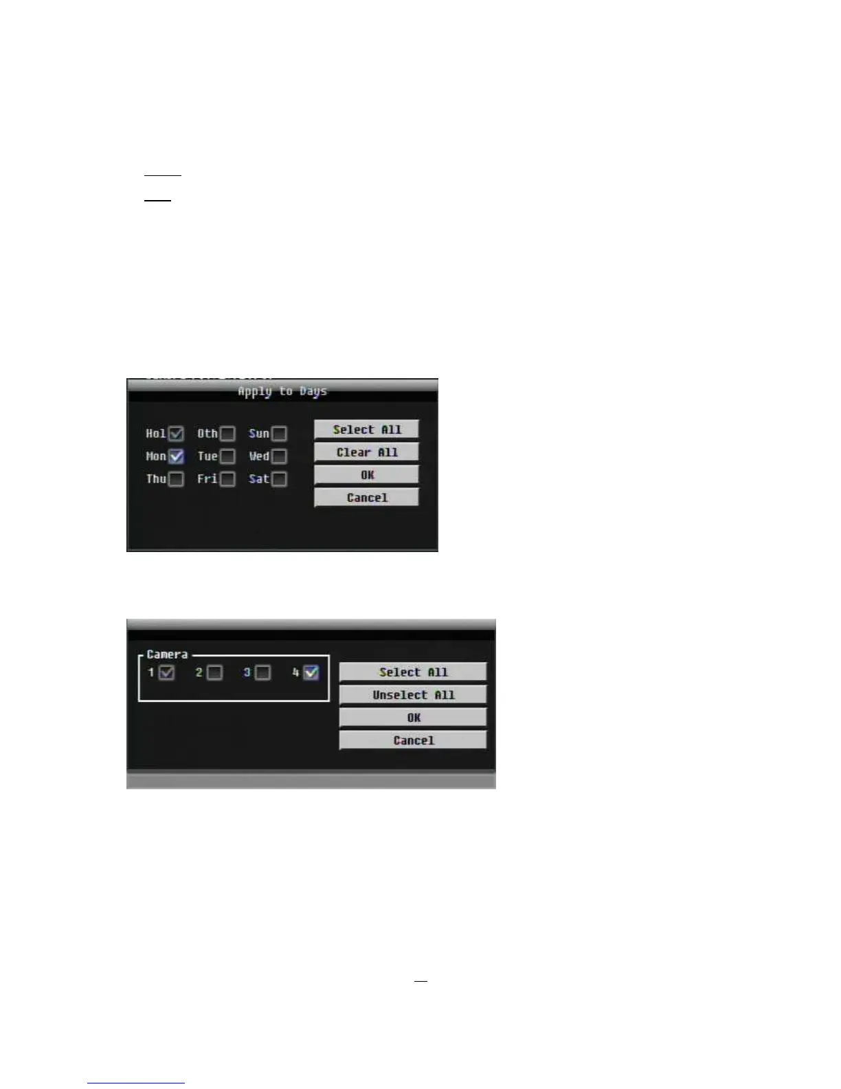 Apply to Cameras: This button can be used to copy schedules to other cameras. Select which cameras